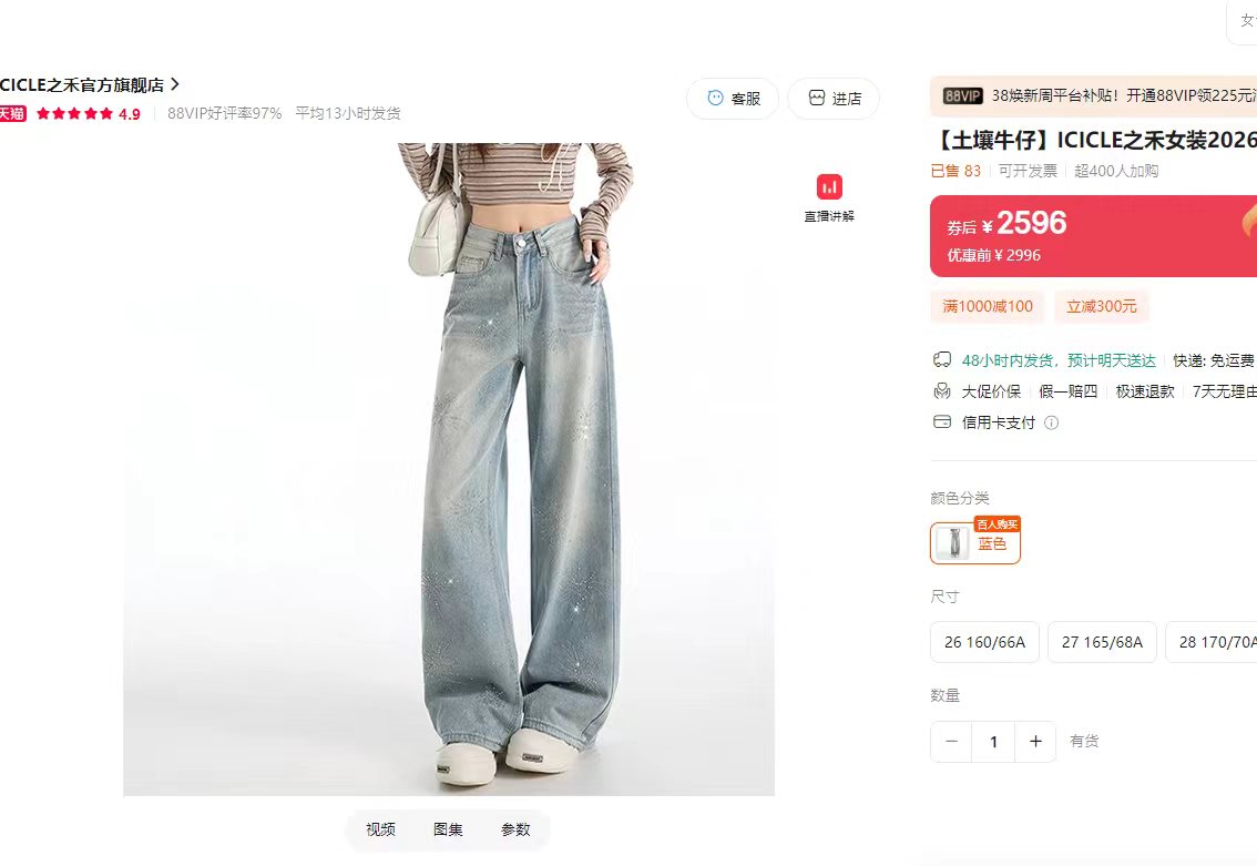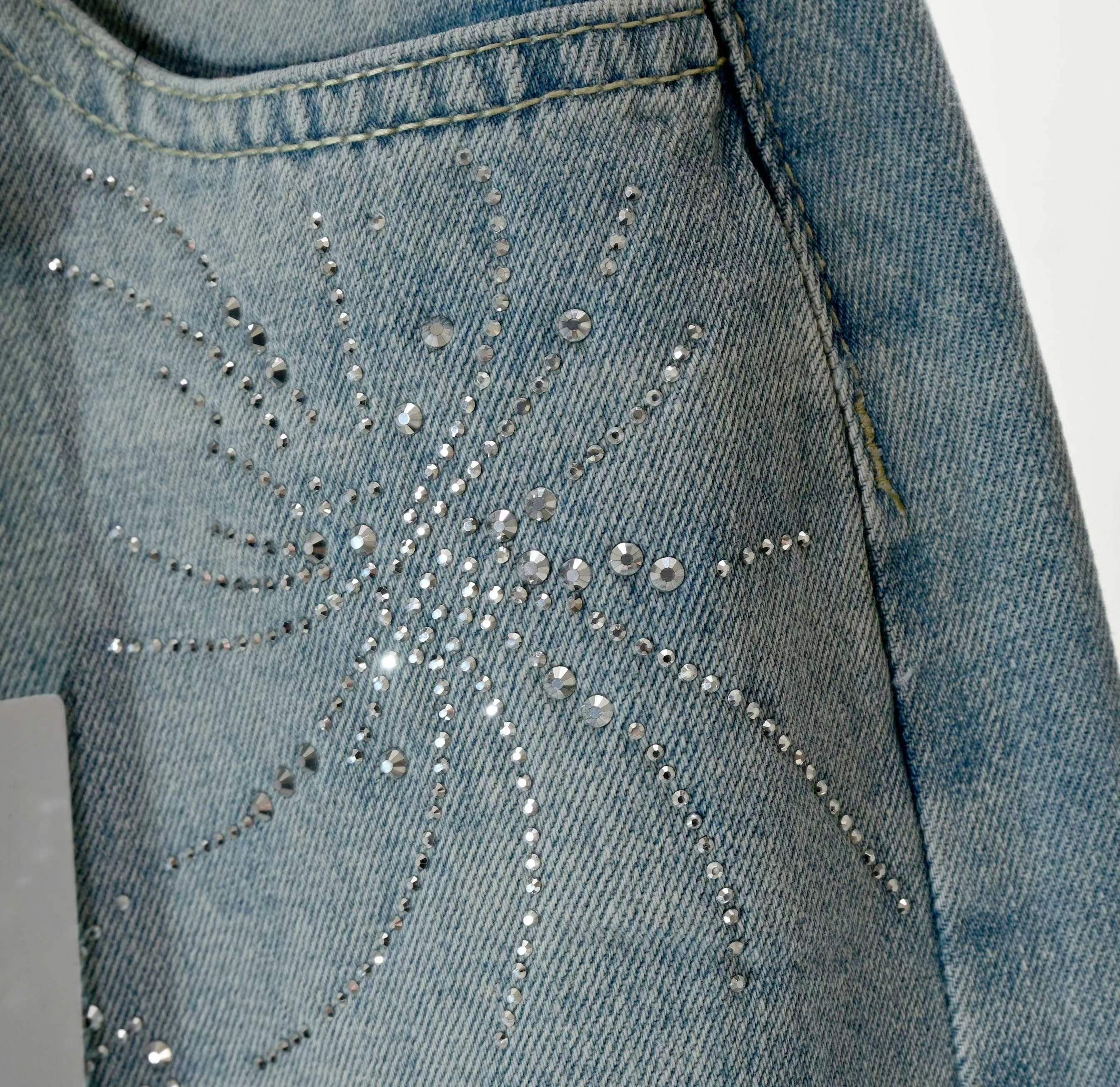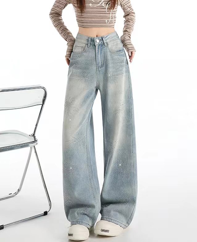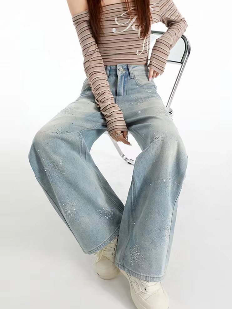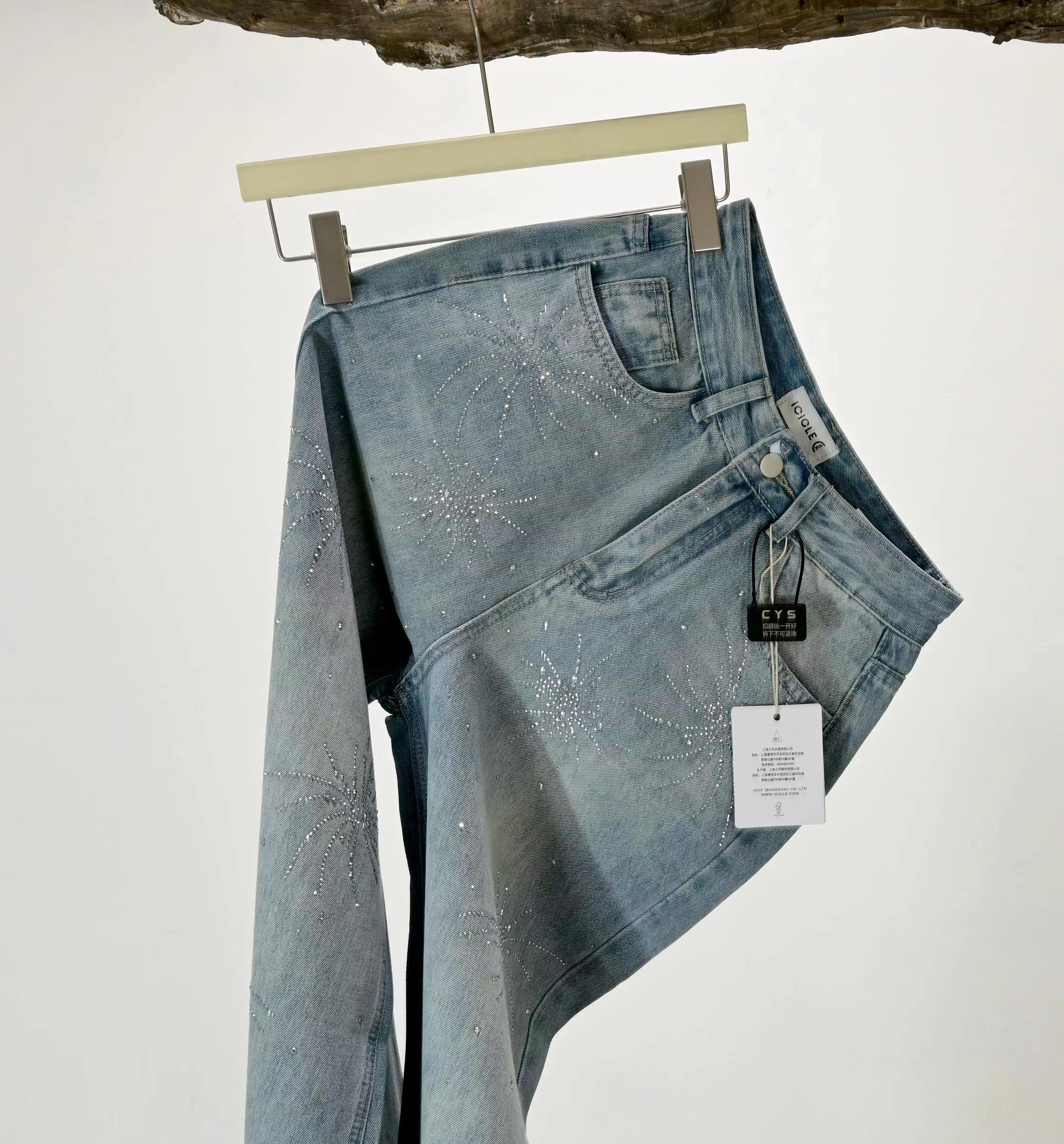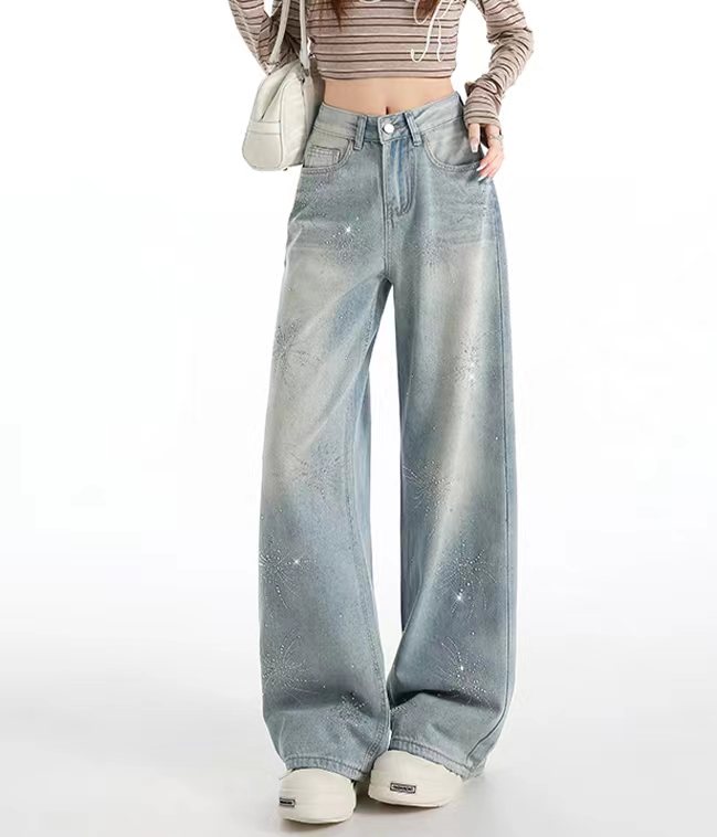 这条阔腿裤选用环保种植棉牛仔,经创新靛蓝染工艺,呈现出如天空般澄澈的浅蓝调,手工烫钻如夜空绽放的烟花,在步履间流转细碎星光,将自然的灵动与都市的jing致巧妙融合,宽松的阔腿剪裁,包容身形,让每一步都自在如风它不仅是一件衣物更是一种与自然共生的生活态度让你在都市丛林中也能寻得内心的松弛与诗意