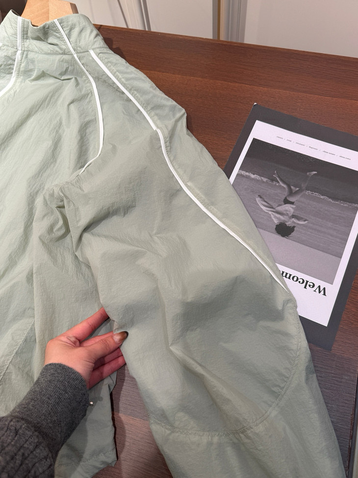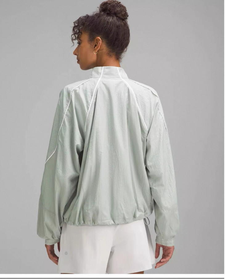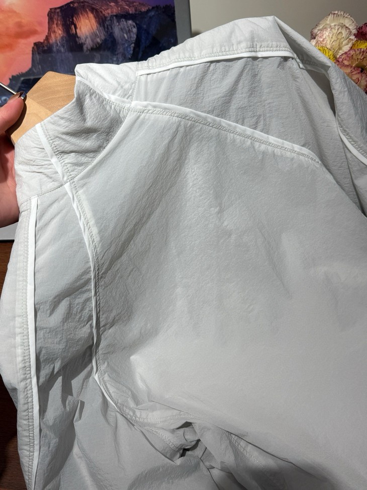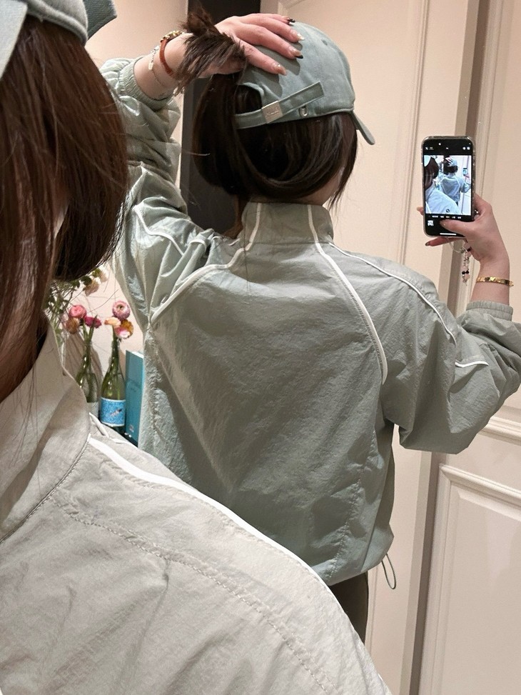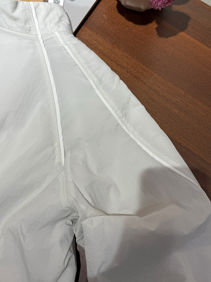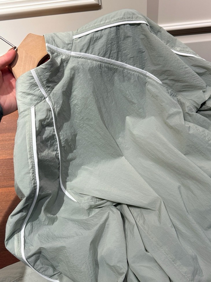 立领宽松短款➕连肩袖设计 连肩袖前后都做了特殊的包条设计 整个袖管以及大身的剪裁线都是很讲究的 都是有一定弧度感的 上身更有味道也更舒服好穿 下摆还🉑调节抽绳