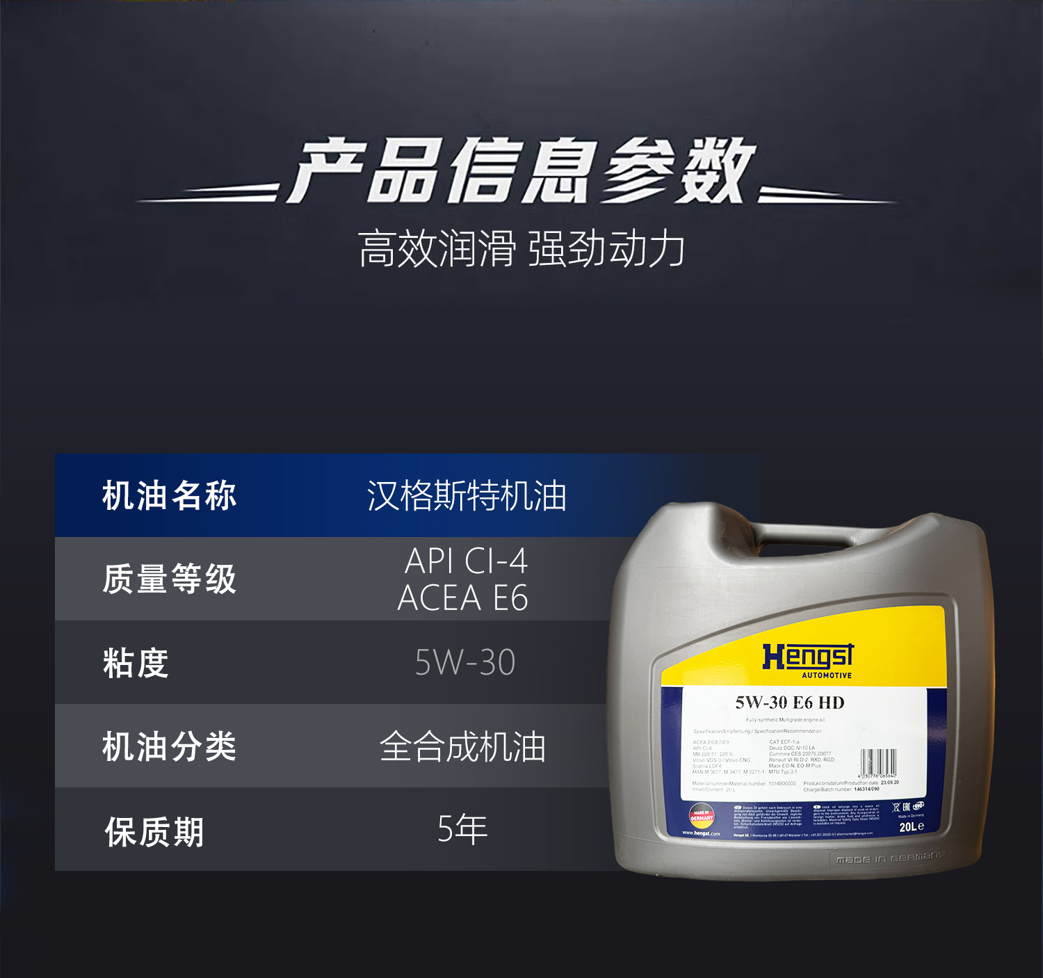 汉格斯特 E6 柴机油5W-30 德国进口CK级别全合成 20L装