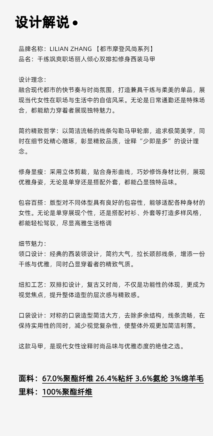 E系列—LILIAN ZHANG 干练飒爽、职场双排扣修身西装马甲 2405030V