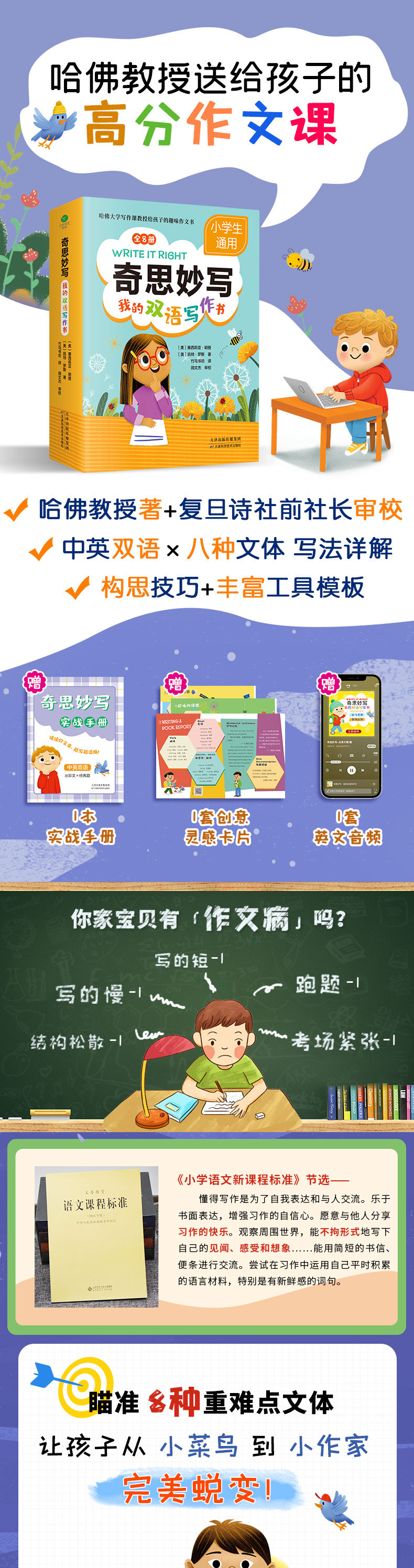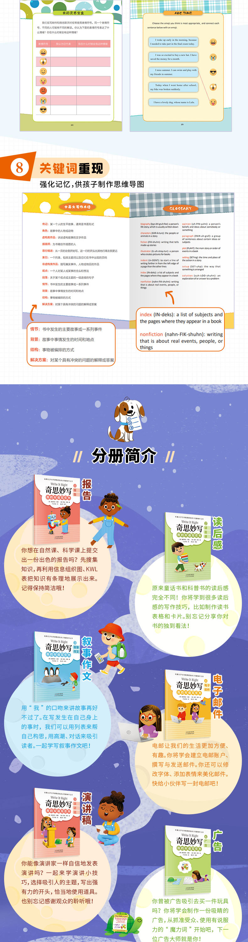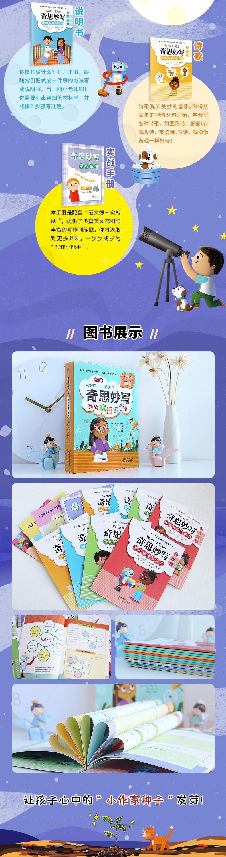 《奇思妙写:我的双语写作书》(全8册)赠 实战手册+创意卡片+音频 6岁+ 中英双语+构思技巧+写作步骤