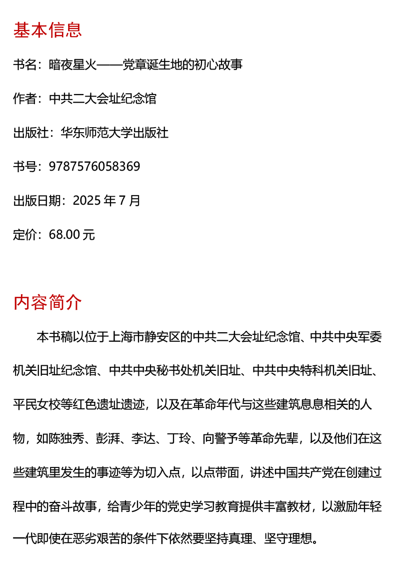 暗夜星火 党章诞生地的初心故事 中共二大会址纪念馆编著 党史学习教育教材
