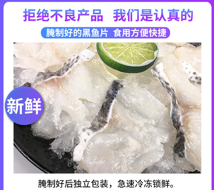 免浆黑鱼片无骨水煮鱼片半成品 250g盒
