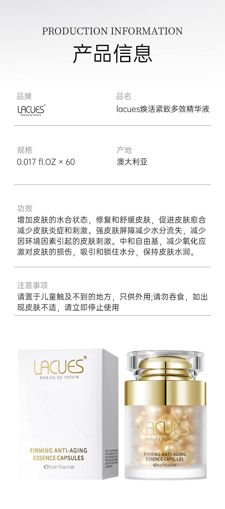 LACUES露可莳 精华丸 澳洲原装进口 以油养肤 60粒/瓶