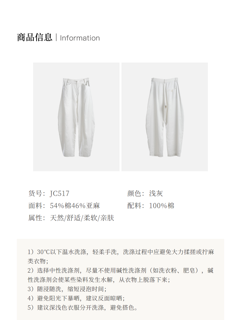 绽放旅行女装517朵【黑白灰系列】廓形感显瘦弯刀阔腿长裤