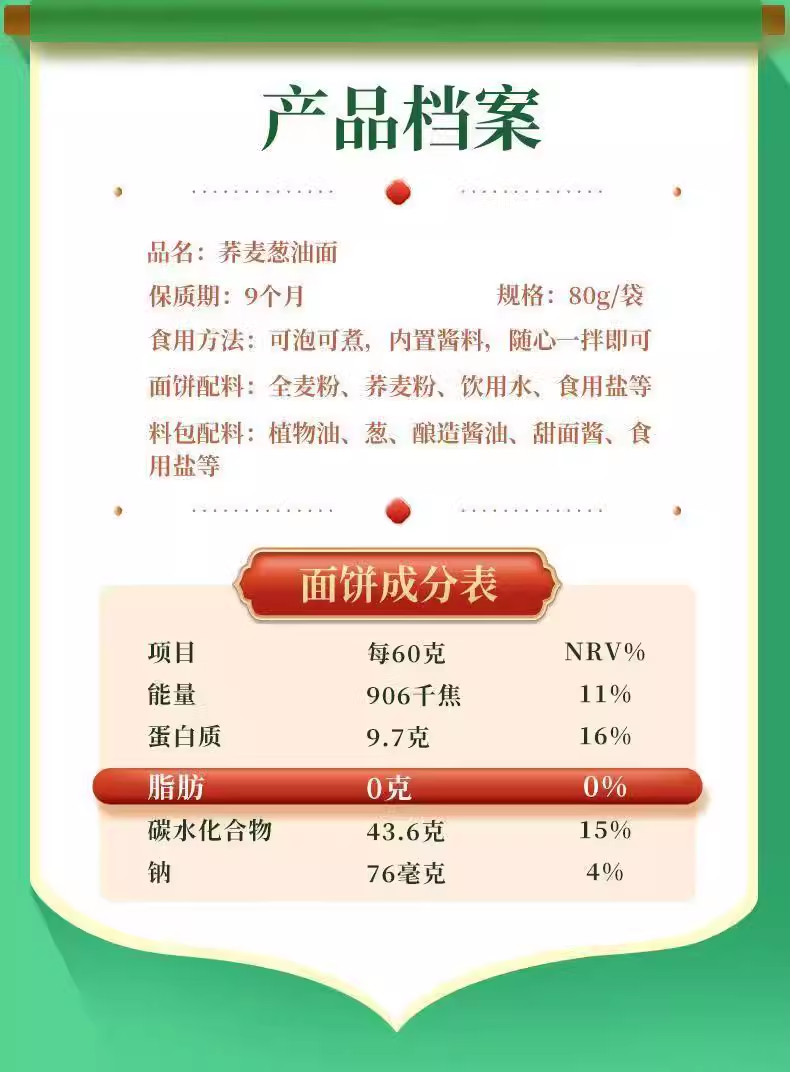 【1件起全国包邮】荞麦面葱油拌面 0脂面饼免煮速食(60g*3袋)