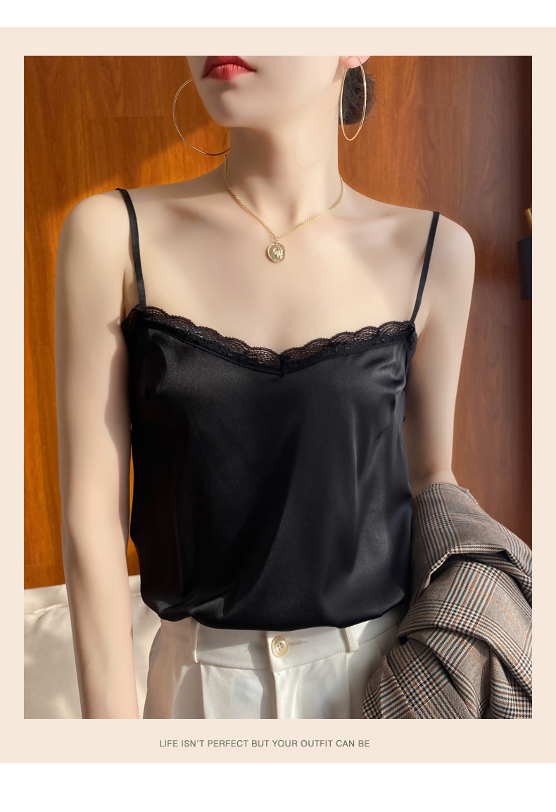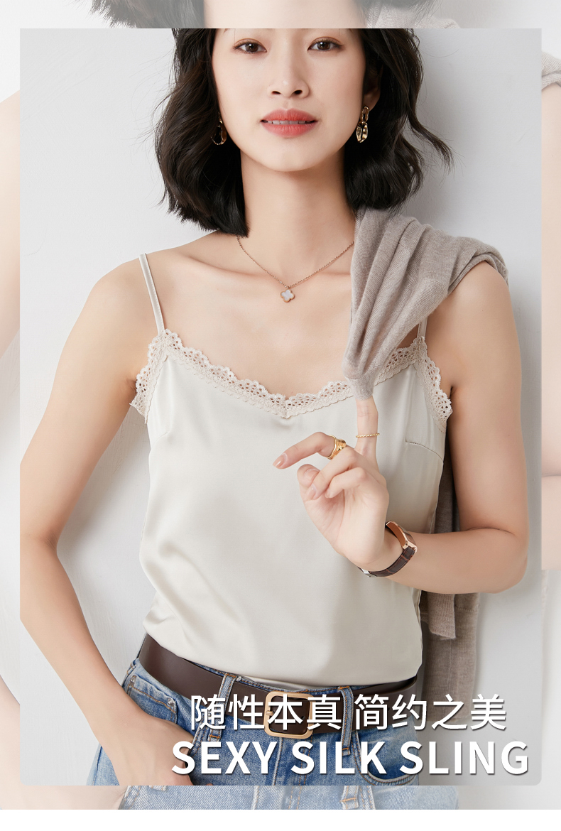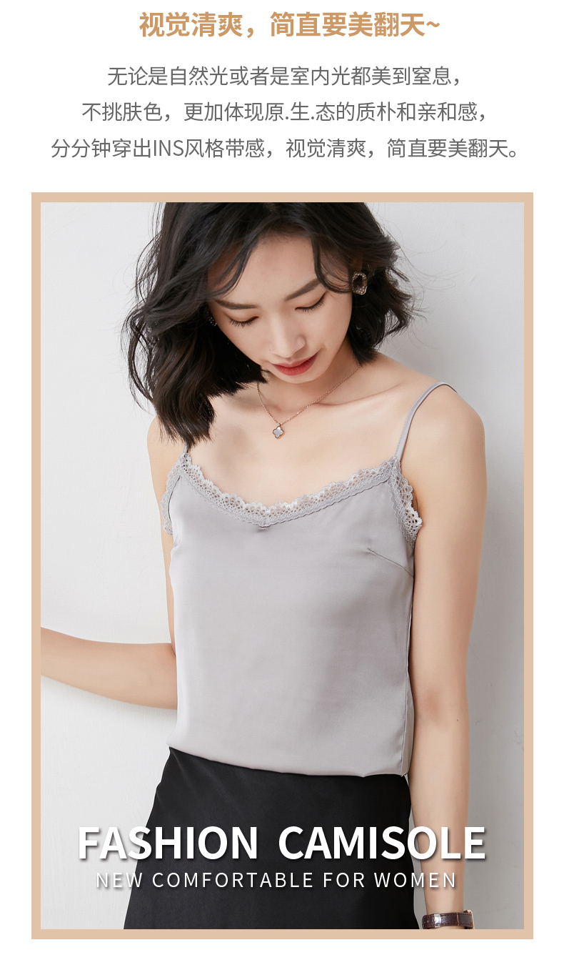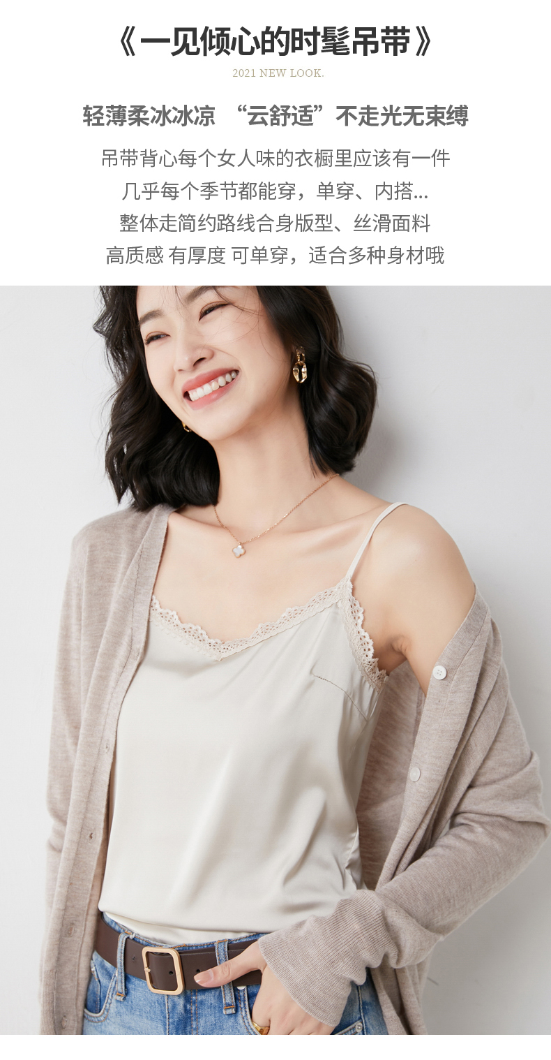 【醋酸缎面】2022夏季新款醋酸花边吊带