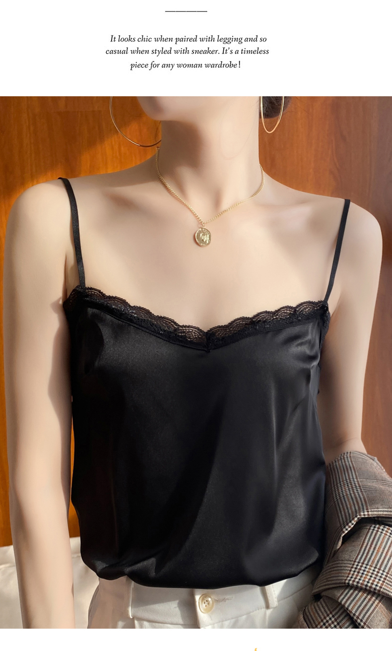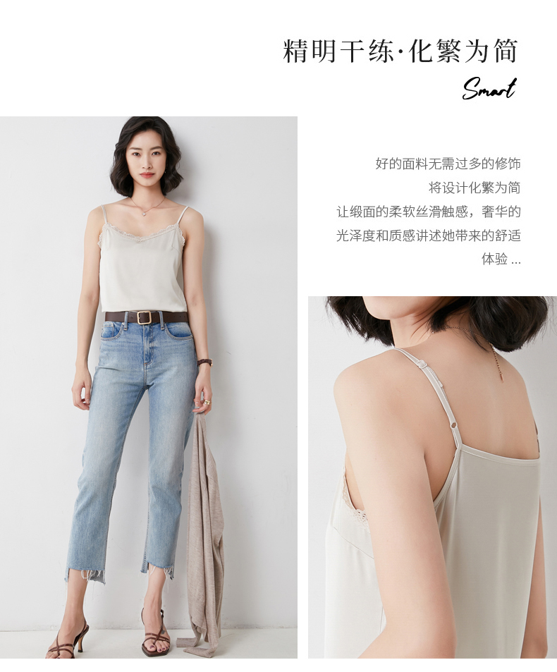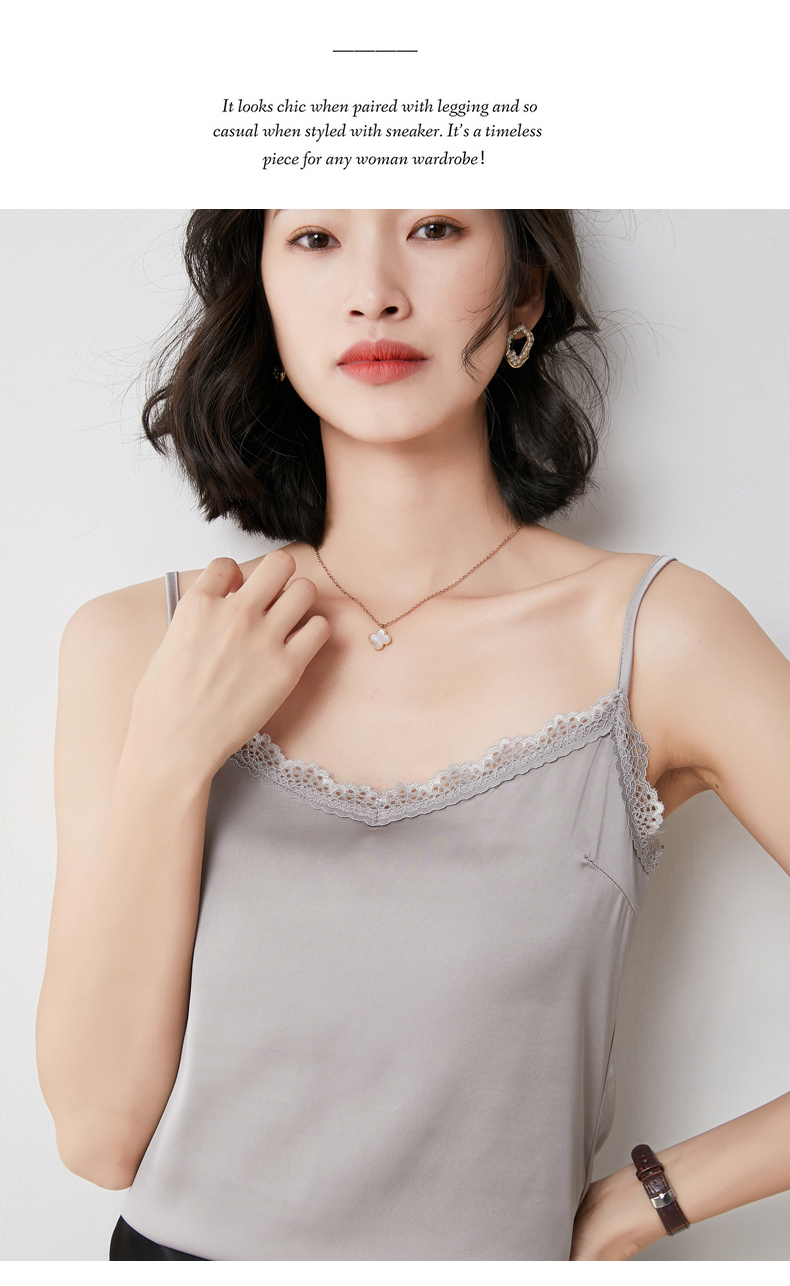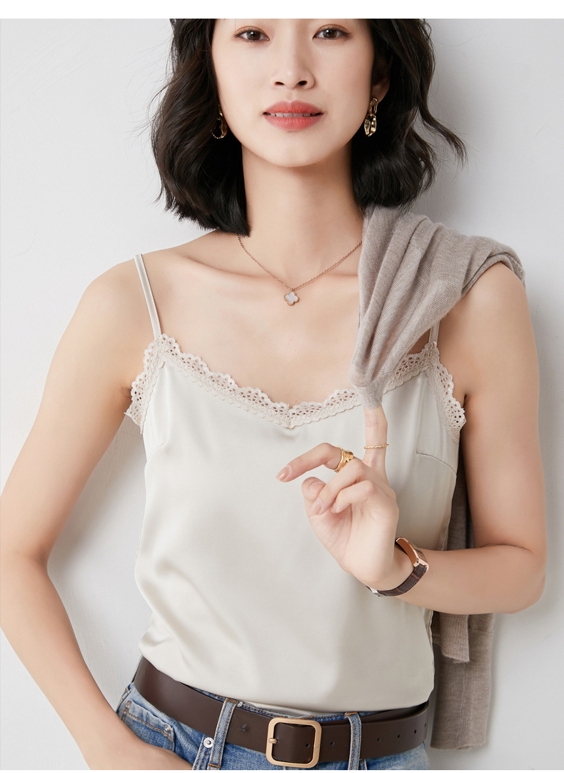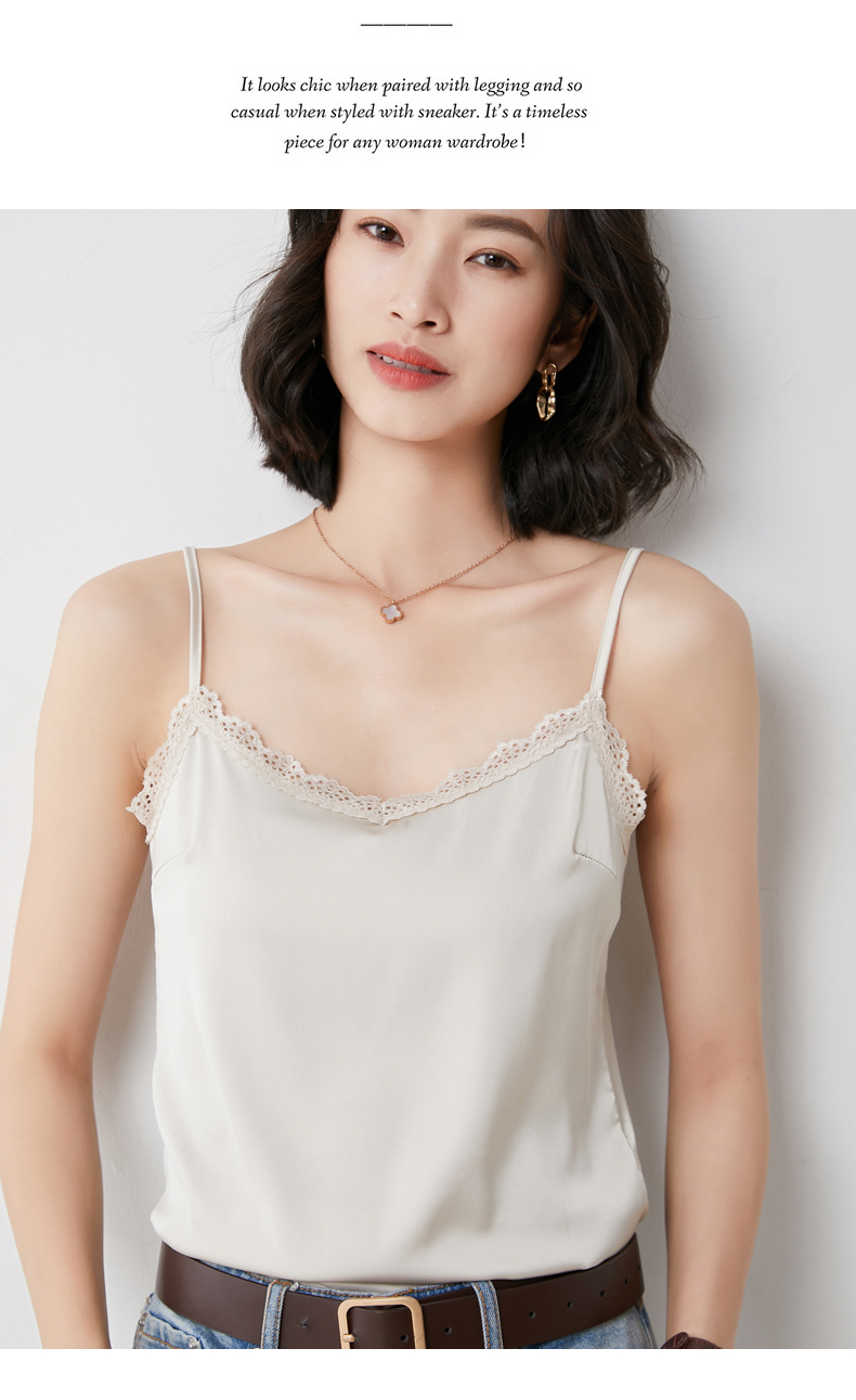 【醋酸缎面】2022夏季新款醋酸花边吊带