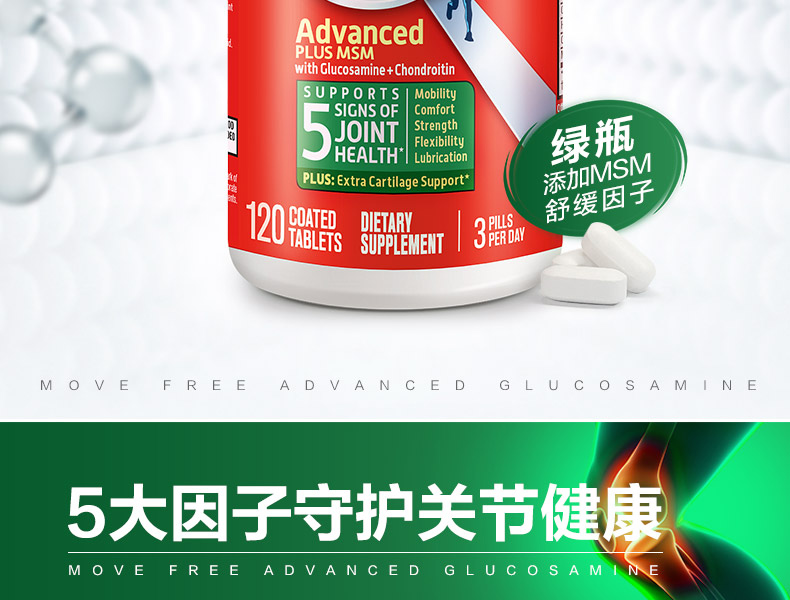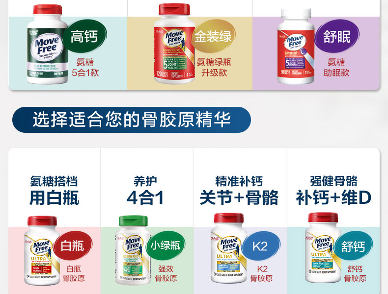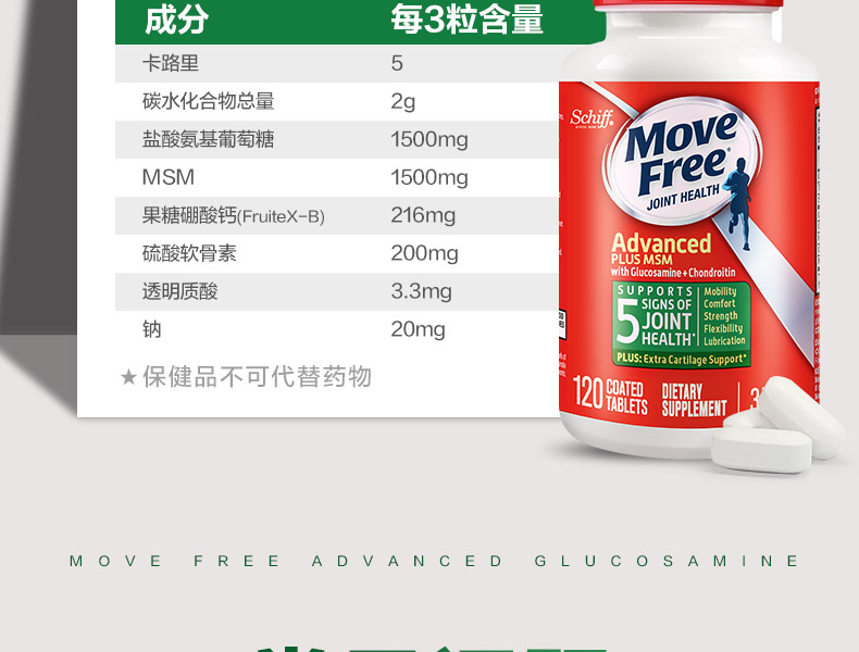 【新年特惠】香港直邮 美国原装进口Schiff Move Free维骨力加强版MSM氨糖素120粒绿瓶