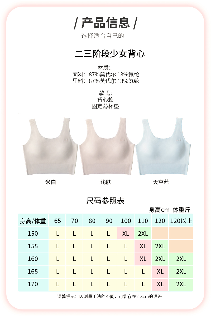 【舒服法则】120支新款少女背心二三阶段【8556】
