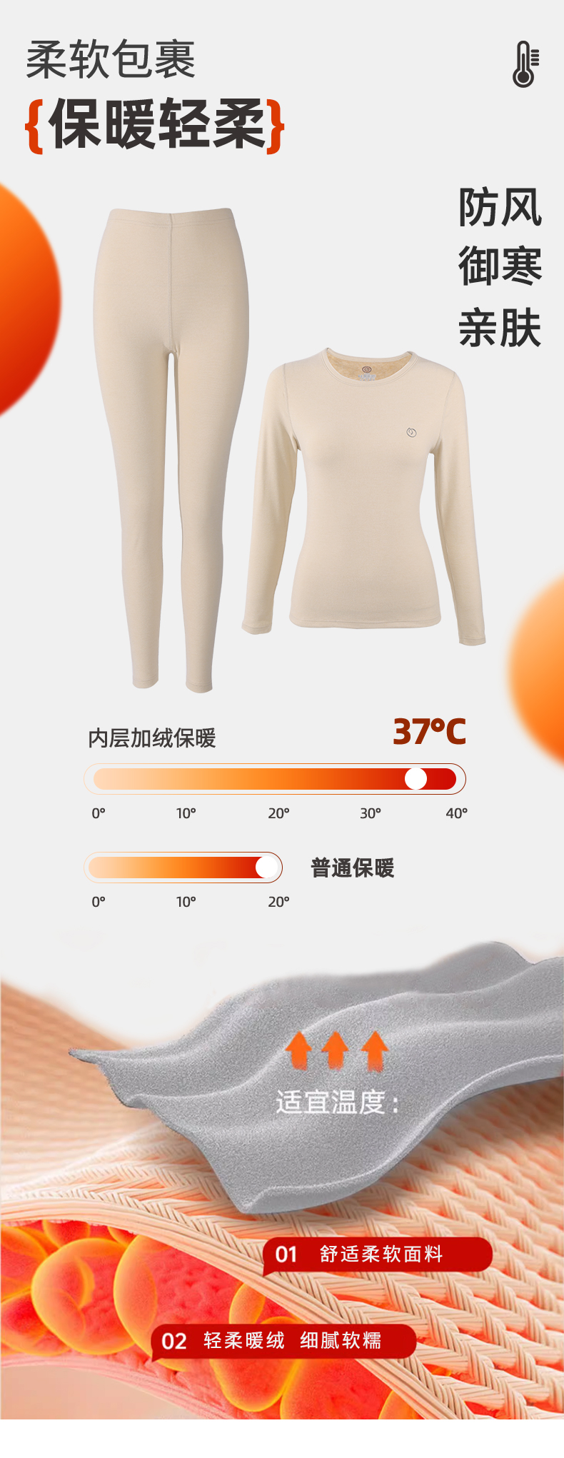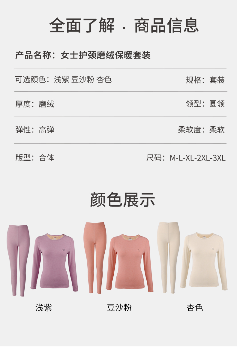 雅黛丽秋衣秋裤套装女款高弹亲肤护颈磨绒保暖内衣套装长袖长裤