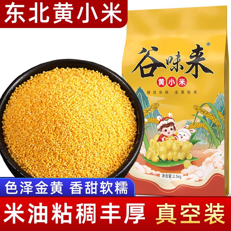 黄小米5斤真空装、米油丰富、新鲜香糯、黄小米米粥、五谷杂粮、真空5斤装