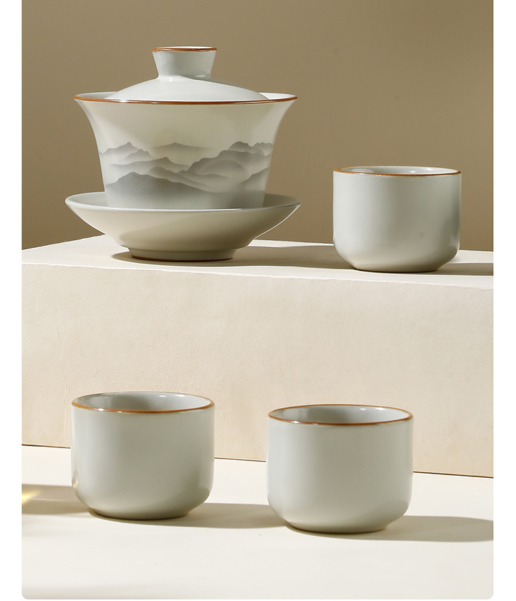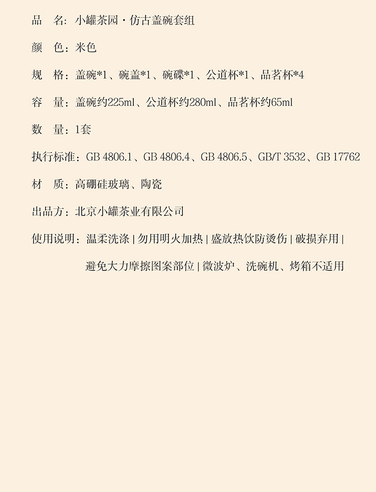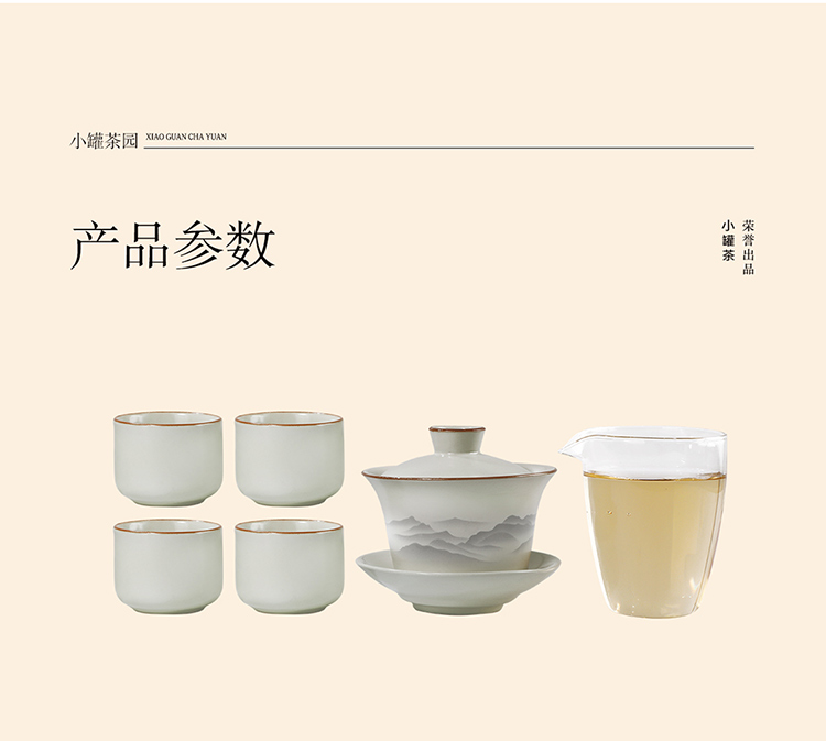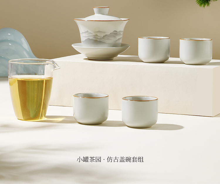小罐茶园·仿古盖碗套组(盖碗约225ml、公道杯约280ml、品茗杯约65ml)【现货】