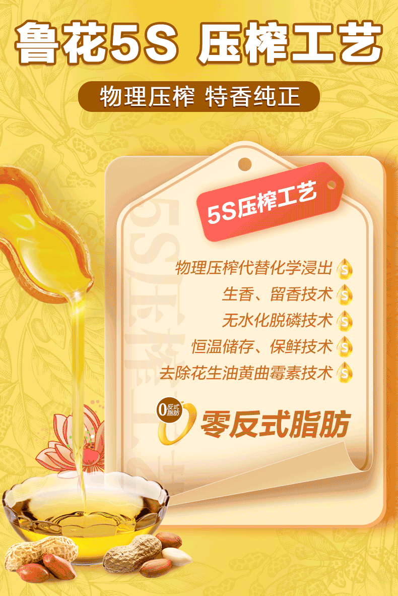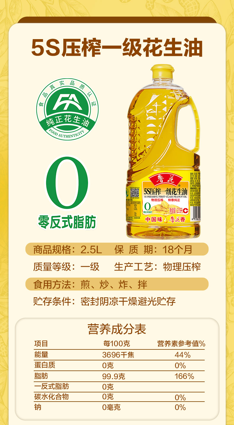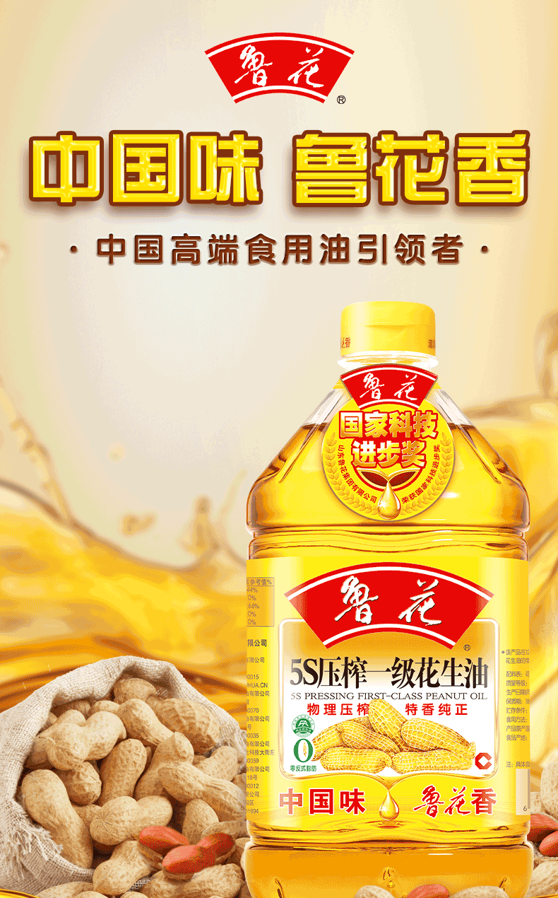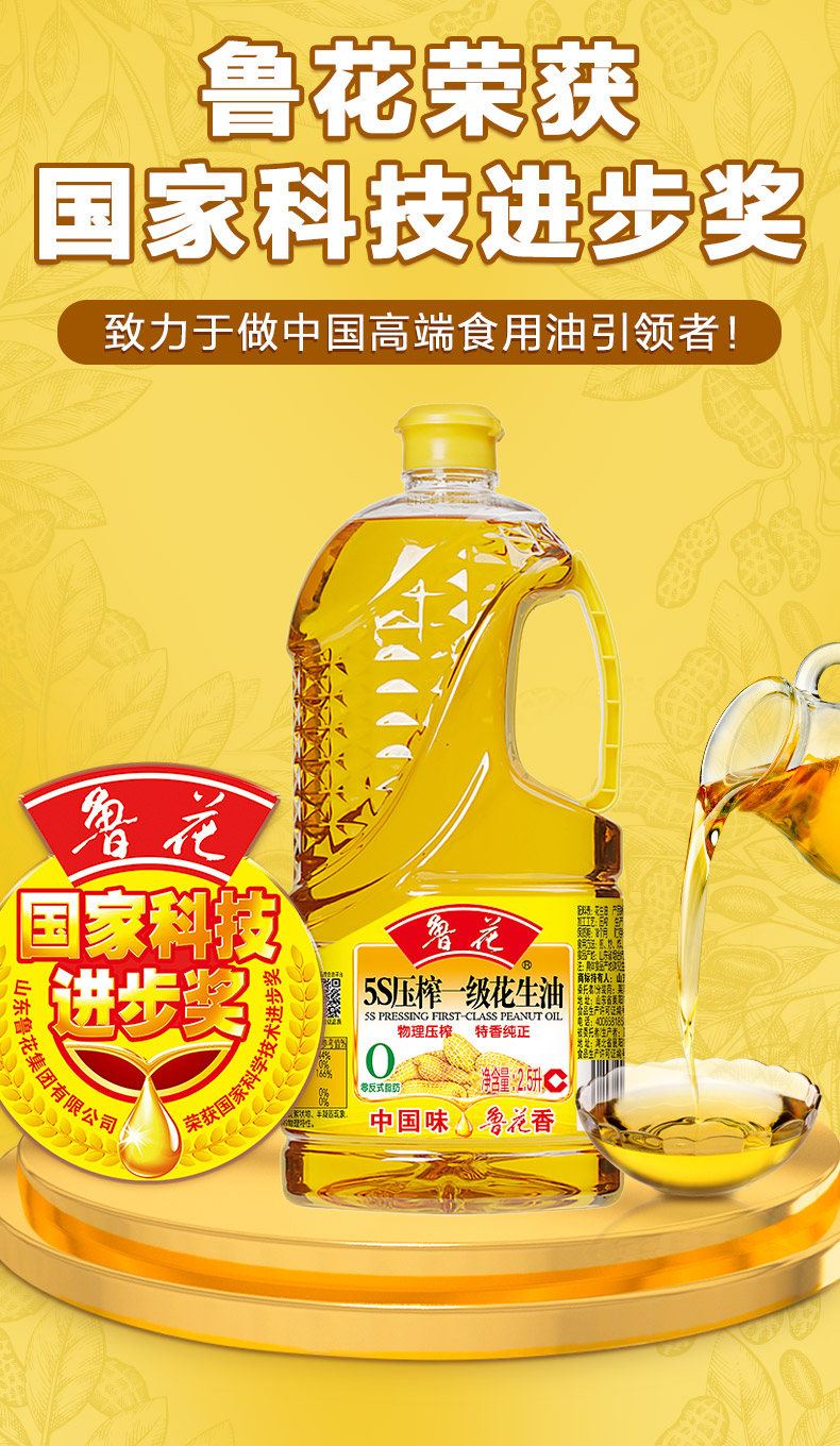 鲁花 5S压榨一级花生油2.5L-5.43L 物理压榨 特香纯正(72小时之内发货)