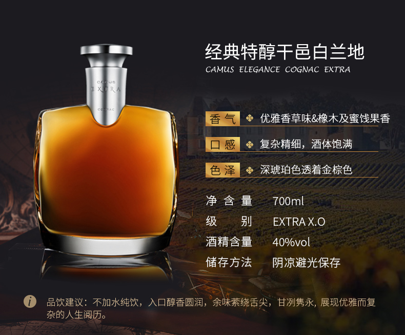 【行货】法国金花卡慕经典特醇干邑白兰地 700ml*1瓶