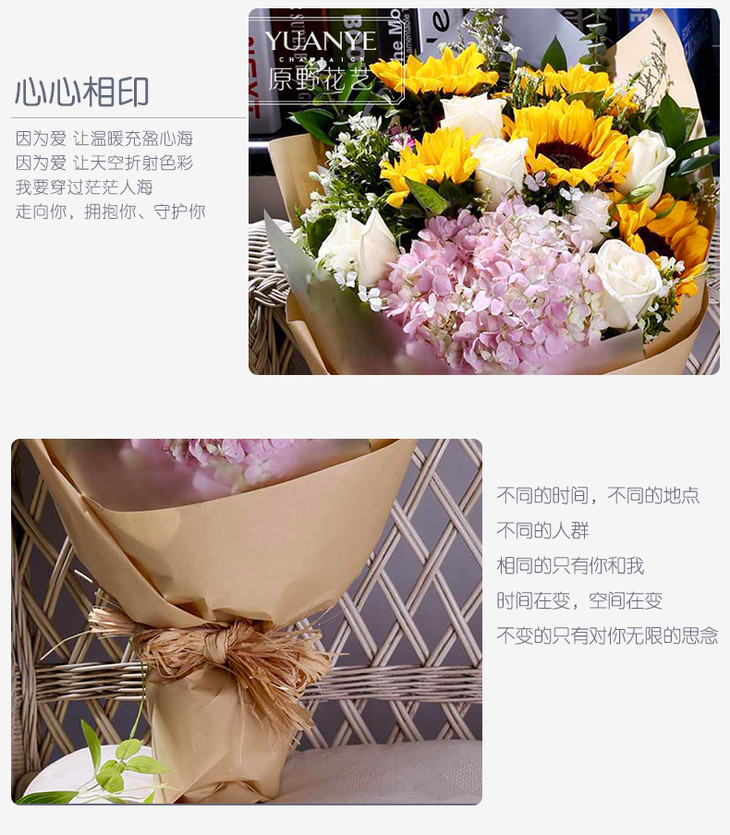 向日葵玫瑰绣球混搭花束