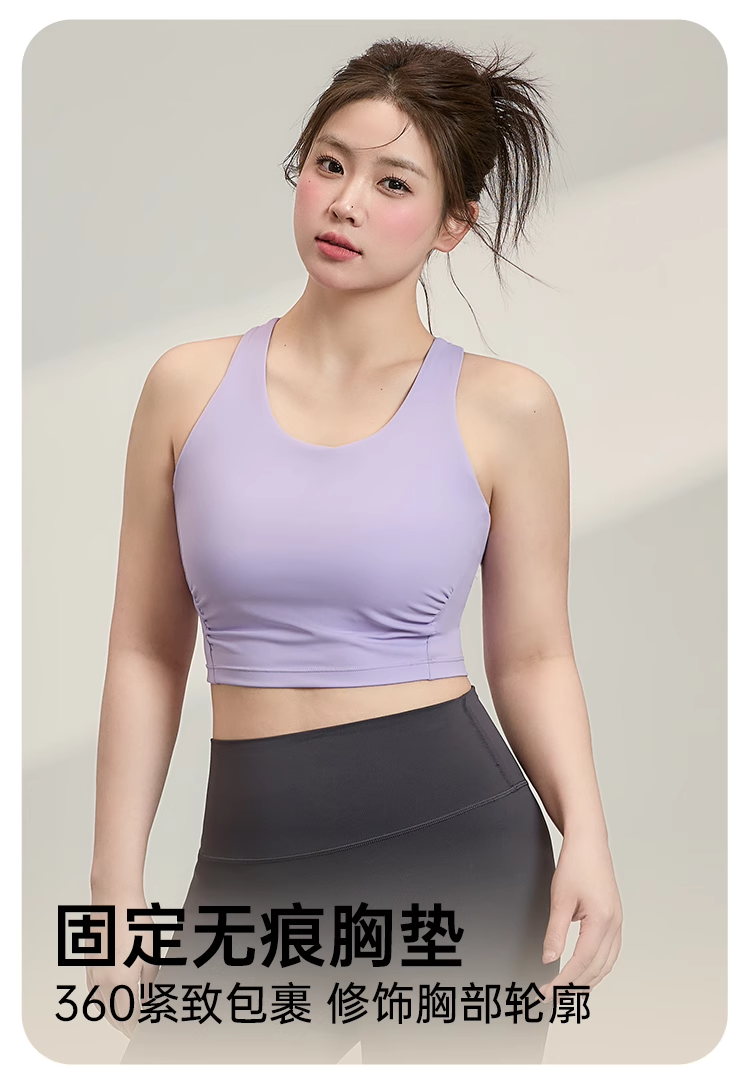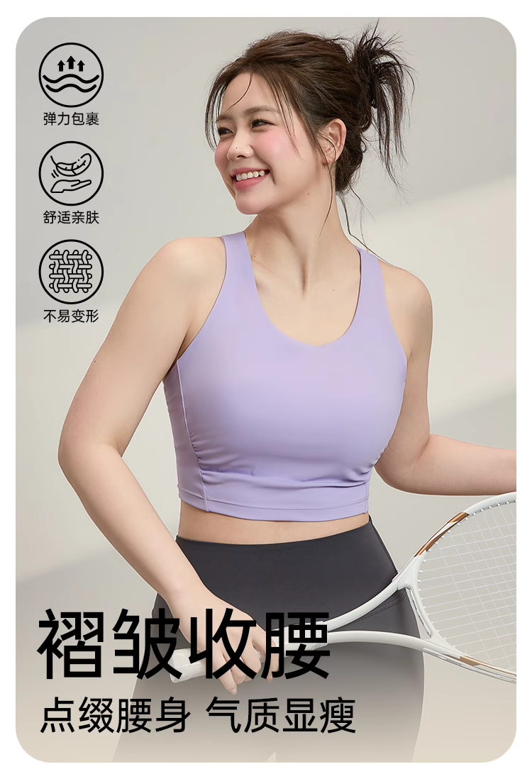跃牌(呗咪纷纷系列)大码运动背心长款舒适百搭一体杯防震瑜伽内衣美背健身WX23003