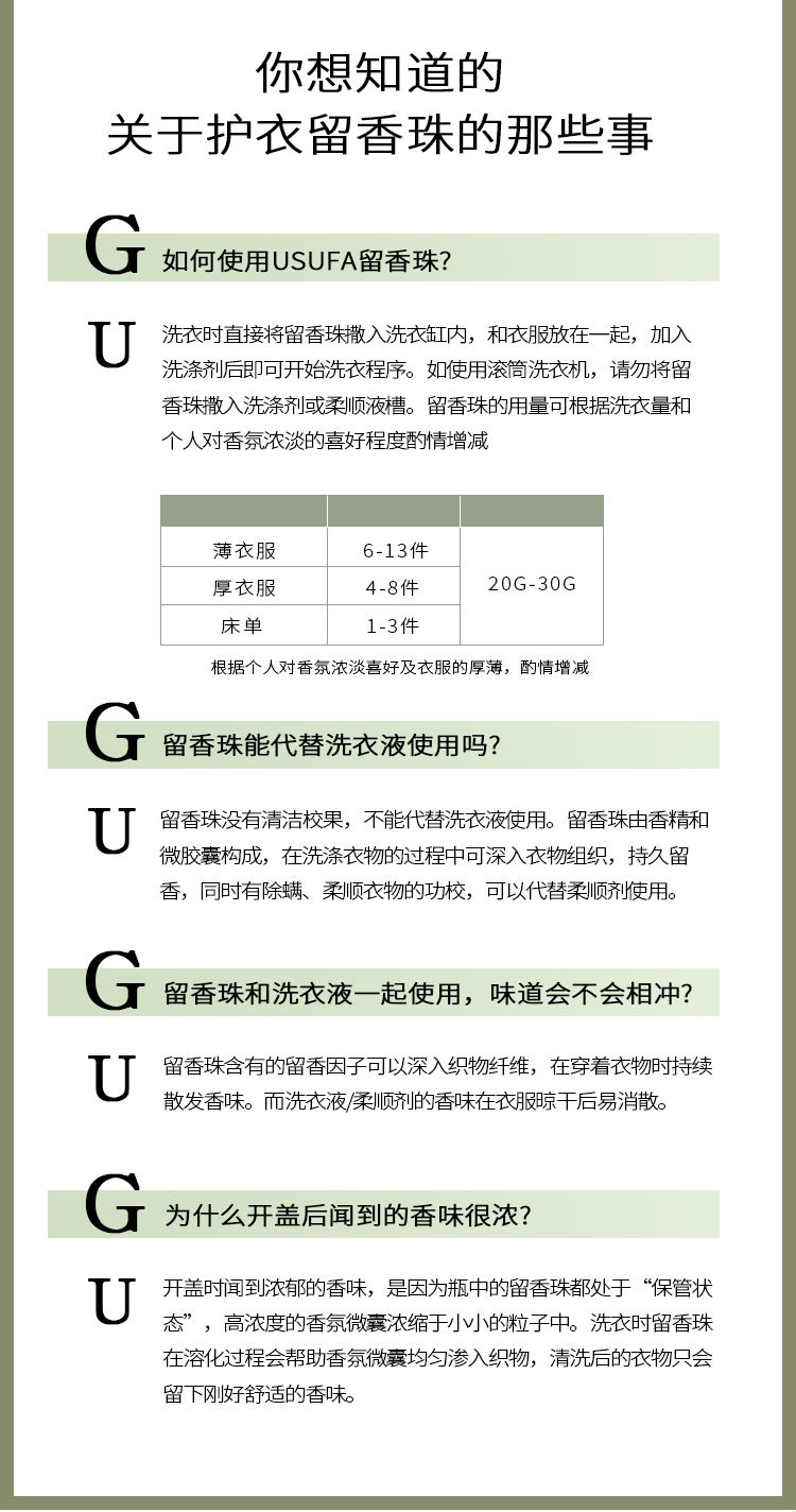USUFA留香珠洗衣服家用香味持久留香凝香珠衣物护衣除螨柔顺