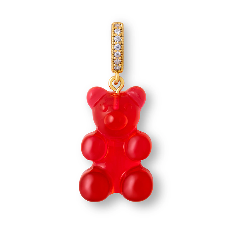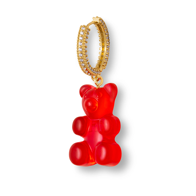 订购4周到|CRYSTAL HAZE-Mega Nostalgia Bear Hoop-pave-果冻红色小熊 耳环[挪威设计师]