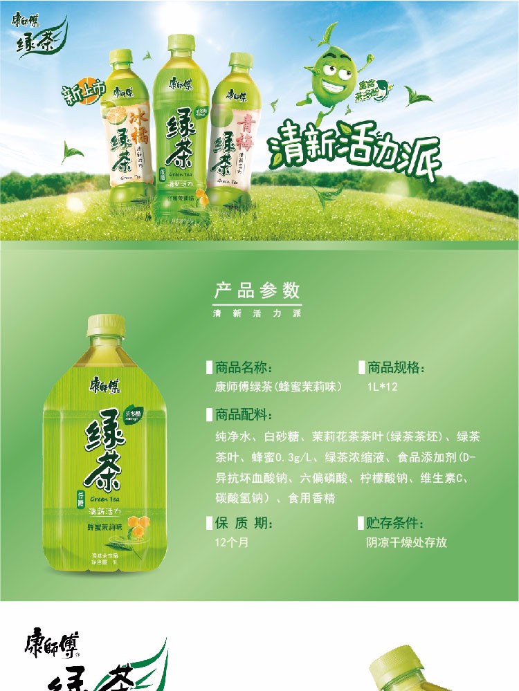 康师傅 茉莉蜜茶果味茶饮料1L冰镇饮料