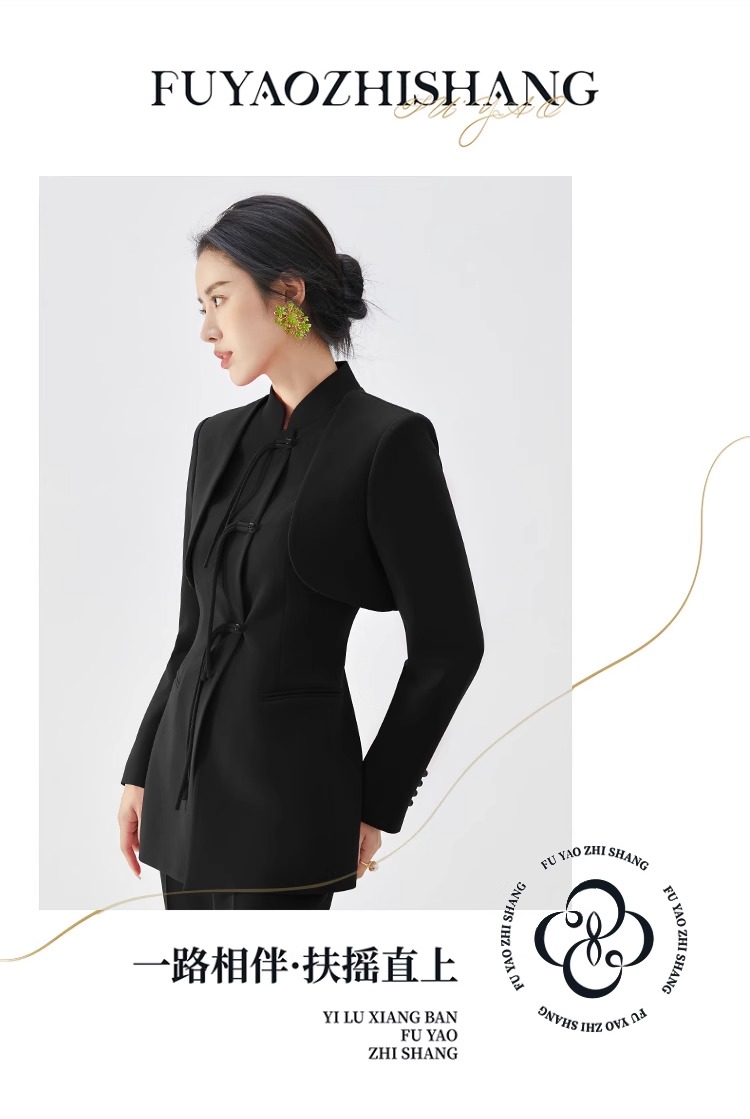 FUYAO扶摇 国风盘扣西服套装女秋冬新中式西装上衣日常穿改良汉服