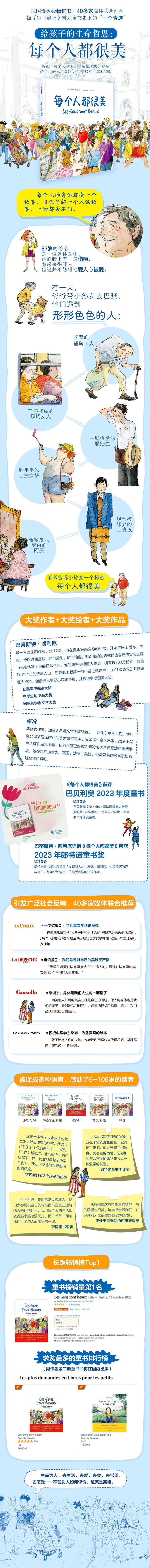 【媒体评论】《十字架报》:当儿童文学谈论身体在传统儿童文学中,王子往往是迷人的,丑陋就是邪恶的代名词。《每个人都很美》更好地反映了现实世界的多样性:肤色、体重、身高、残疾等。《每个人都很美》让我们看到一个个不完美身体背后的故事,教我们爱自己,包容人与人之间的差异,不要取笑与众不同的人。
