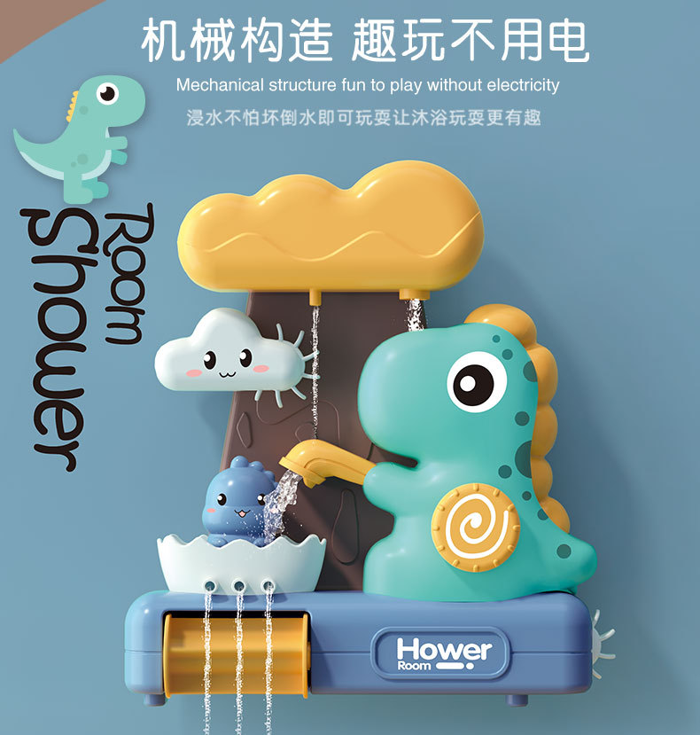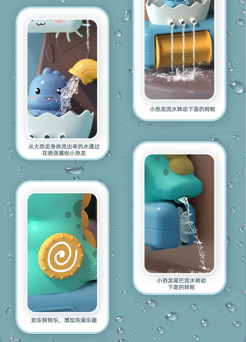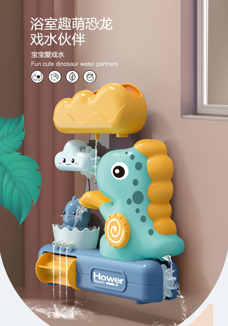 【趣玩不用电!增加宝宝洗澡乐趣】儿童趣萌恐龙转转乐吸盘 游泳浴室戏水花洒喷水 男女宝宝洗澡玩具