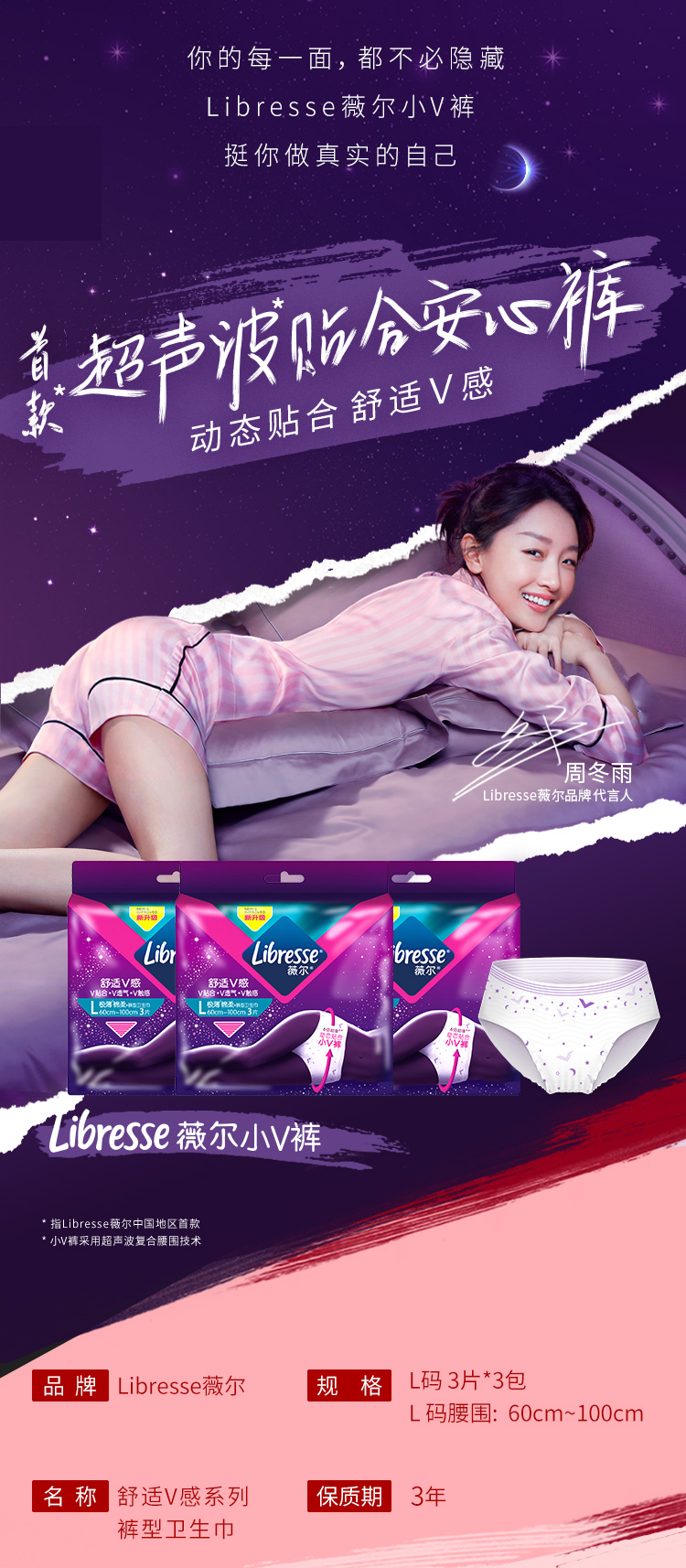 Libresse薇尔舒适V感3片裤型卫生巾L码*三包装
