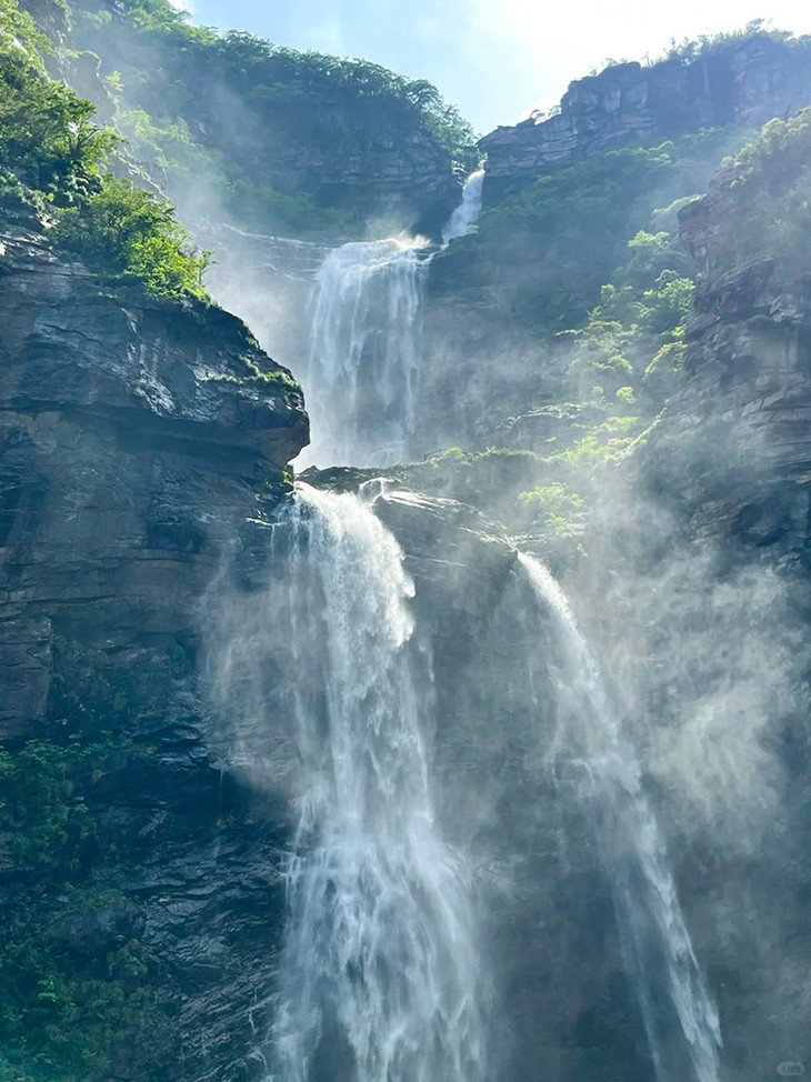 三叠泉是庐山的标志性景点之一,有 “不到三叠泉,不算庐山客” 之说。它由大月山、五老峰的涧水汇合,从大月山流出,经过五老峰背,由北崖悬口注入大盘石上,又飞泻到二级大盘石,再喷洒至三级盘石,形成三叠。每叠各具特色,上级如飘雪拖练,中级如碎玉摧冰,下级如玉龙走潭,仰看与俯视各蔚为壮观。