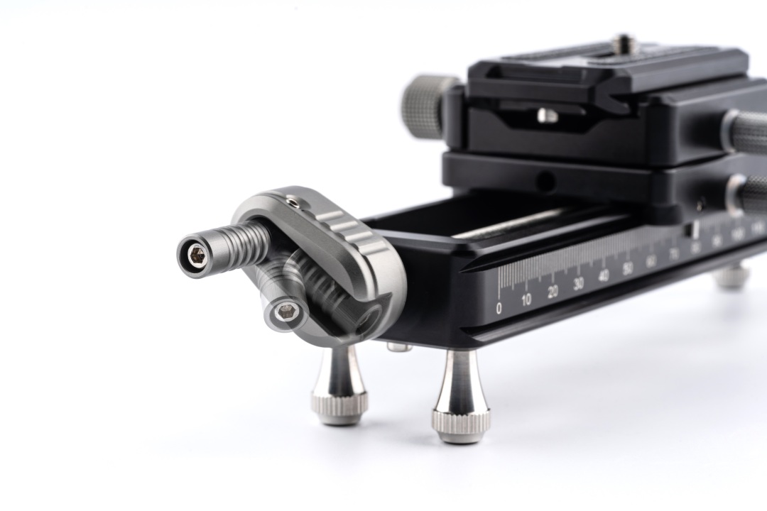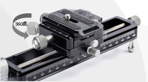 NiSi微距云台导轨采用阿卡标准夹座及快装板设计,高品质铝材经CNC精密车制,表面全采用硬质阳极氧化,同时每旋转一圈可位移1.25mm,也可双导轨叠加安装,实现双轴同时调整。