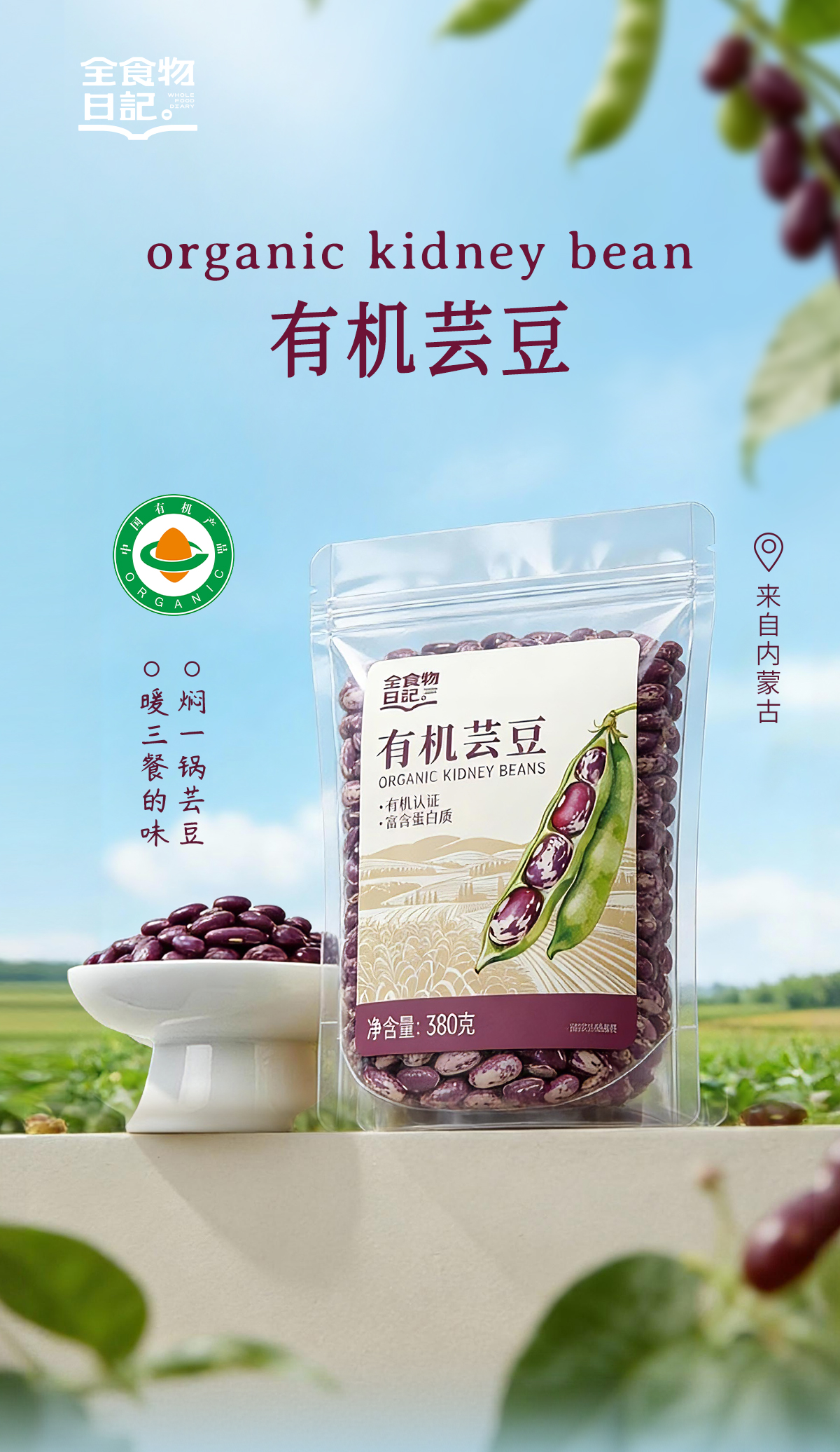 全食物日记 有机芸豆(花腰)380g