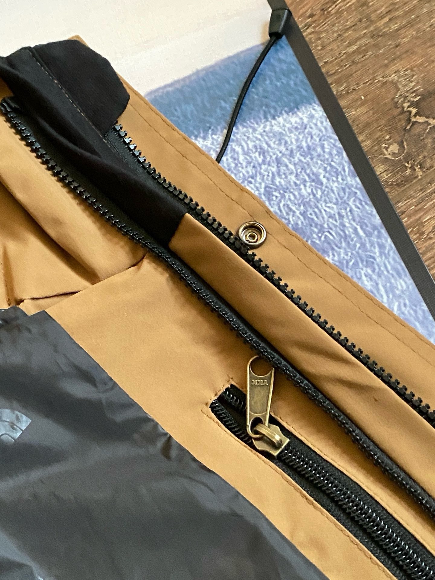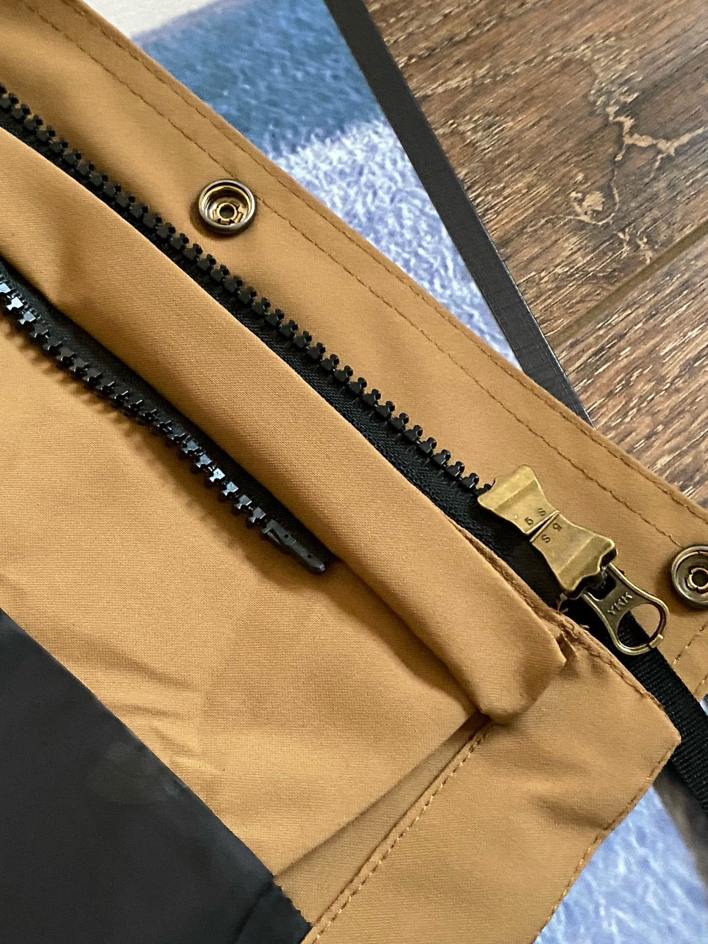 5号YKK铜制拉链,顺滑耐用。