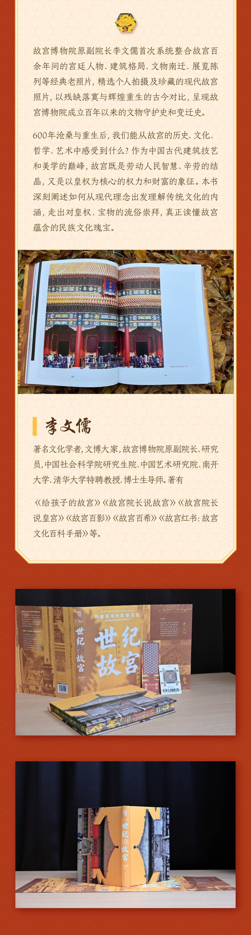 世纪故宫 作者:李文儒 书号:344911 定价:¥188 元 字数:156 千字 印次:1-1 开本:大16 出版时间:2025-09-30 ISBN:978-7-300-34491-1 包装:精