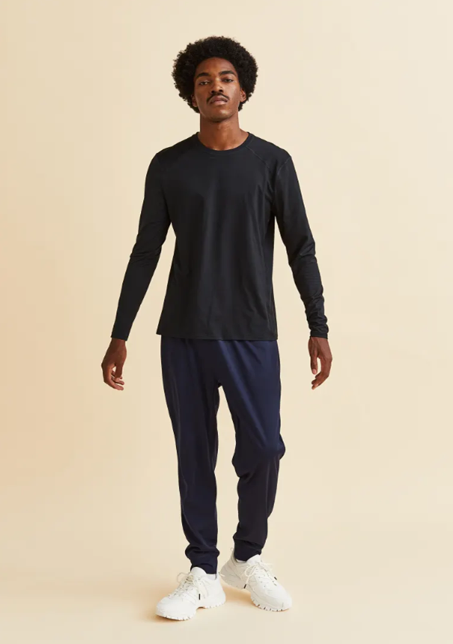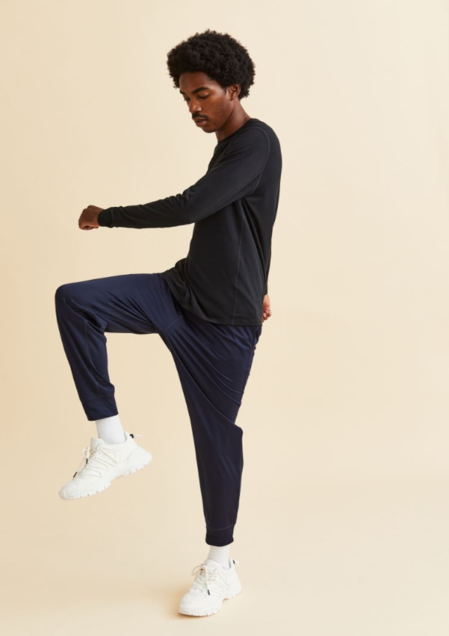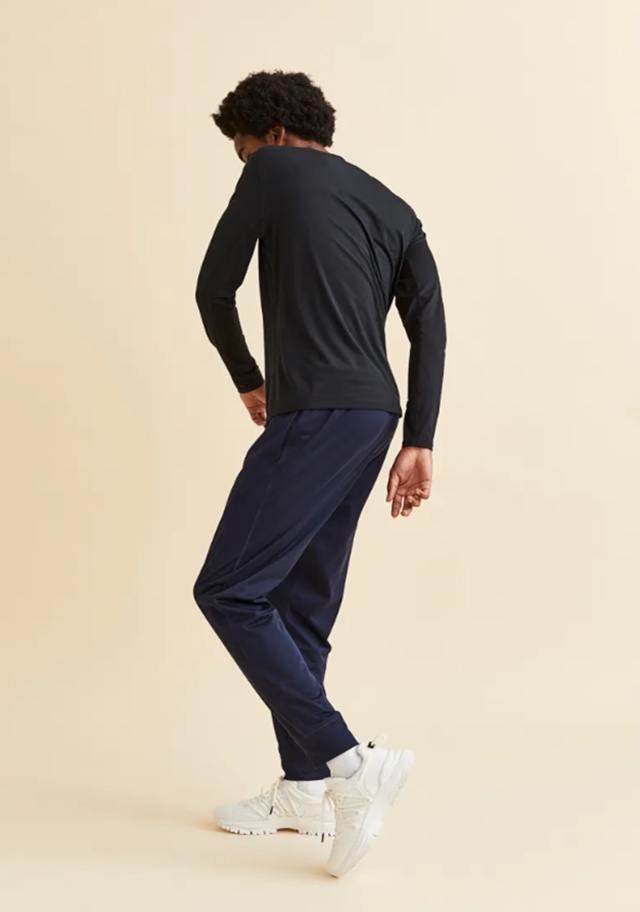 中低腰裤脚双螺纹加宽束脚设计 宽松上身,臀部和裤腿微加宽处理