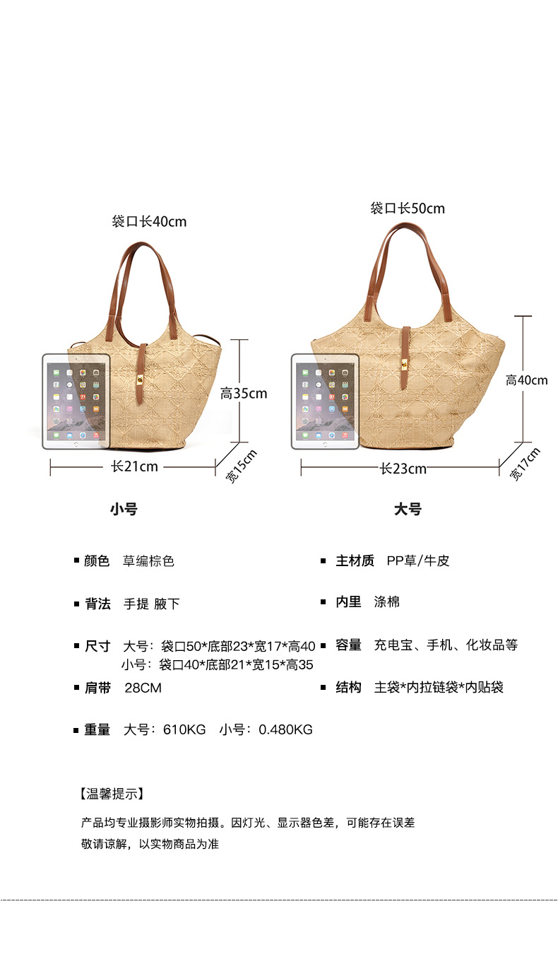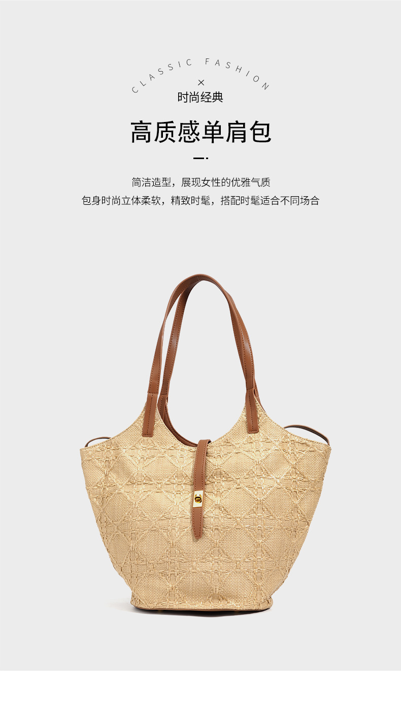 【预售3天】2025新款小众设计大容量水桶包通勤草编托特包休闲百搭单肩包女包YQ8330