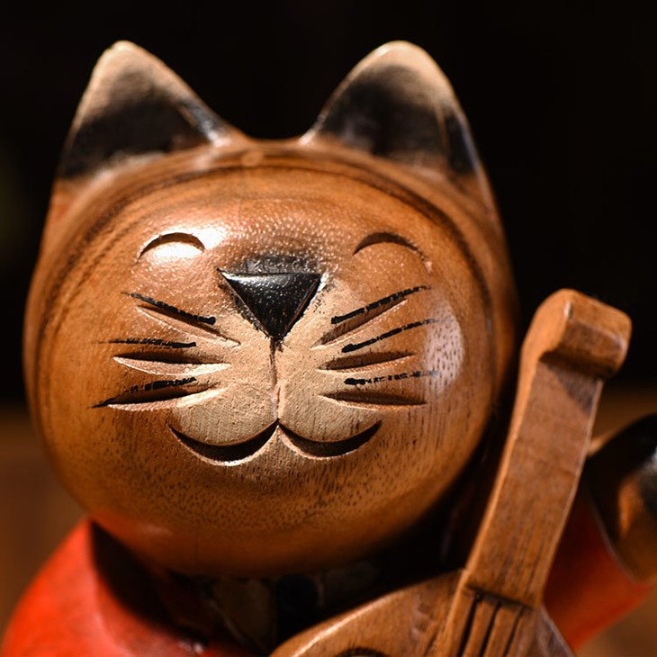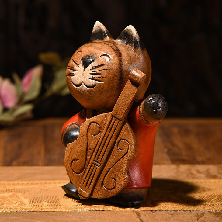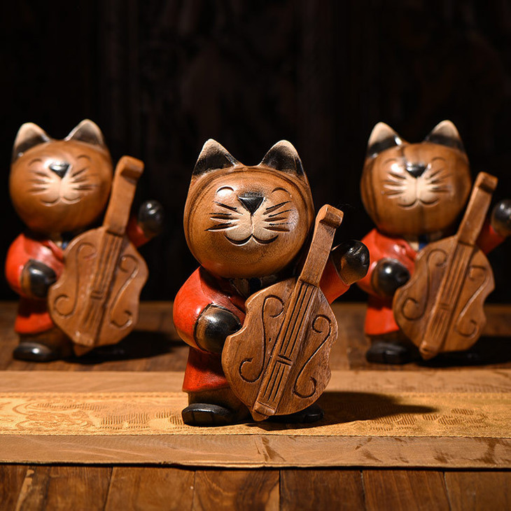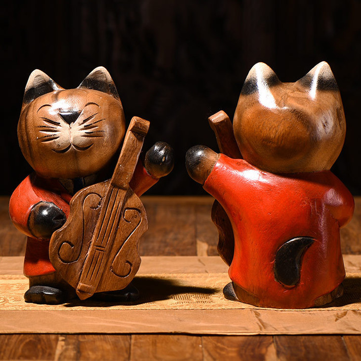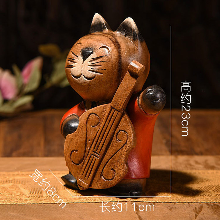 【家居摆件】东南亚风格服务员实木小猫木雕家居摆件