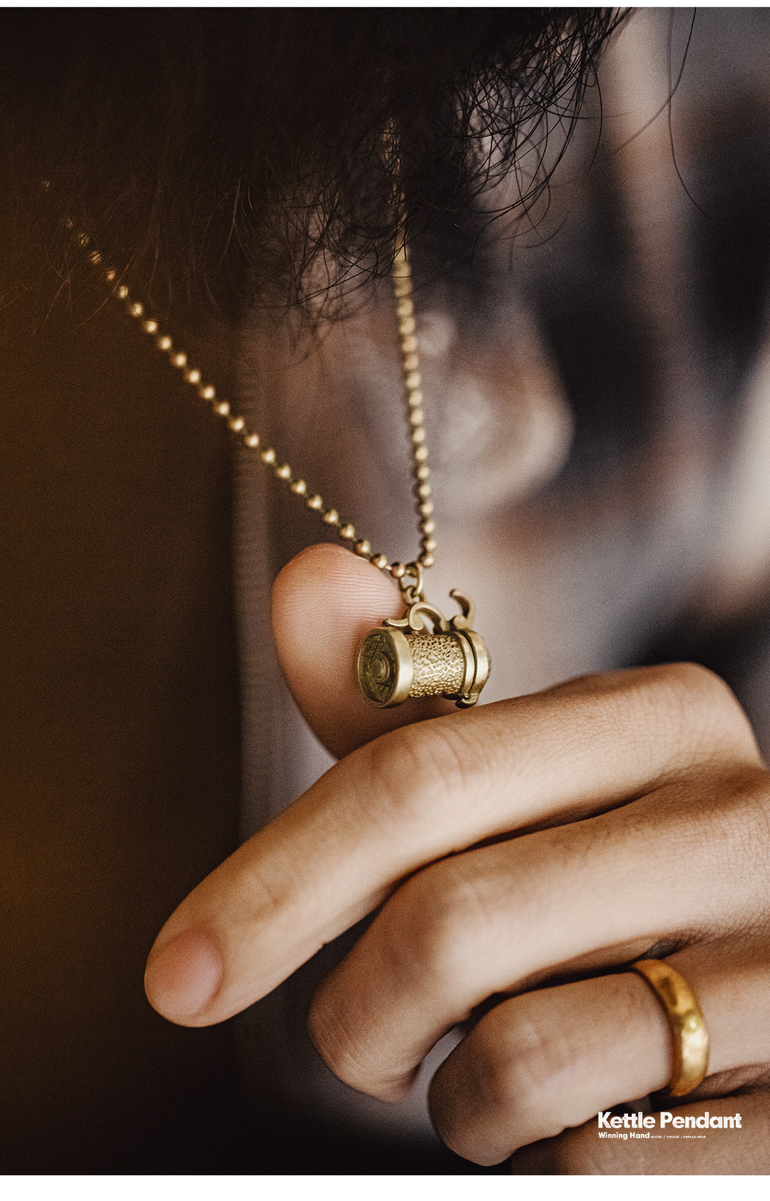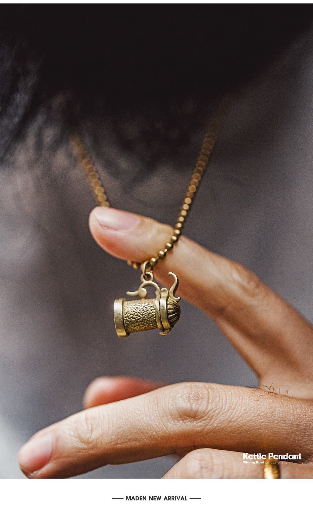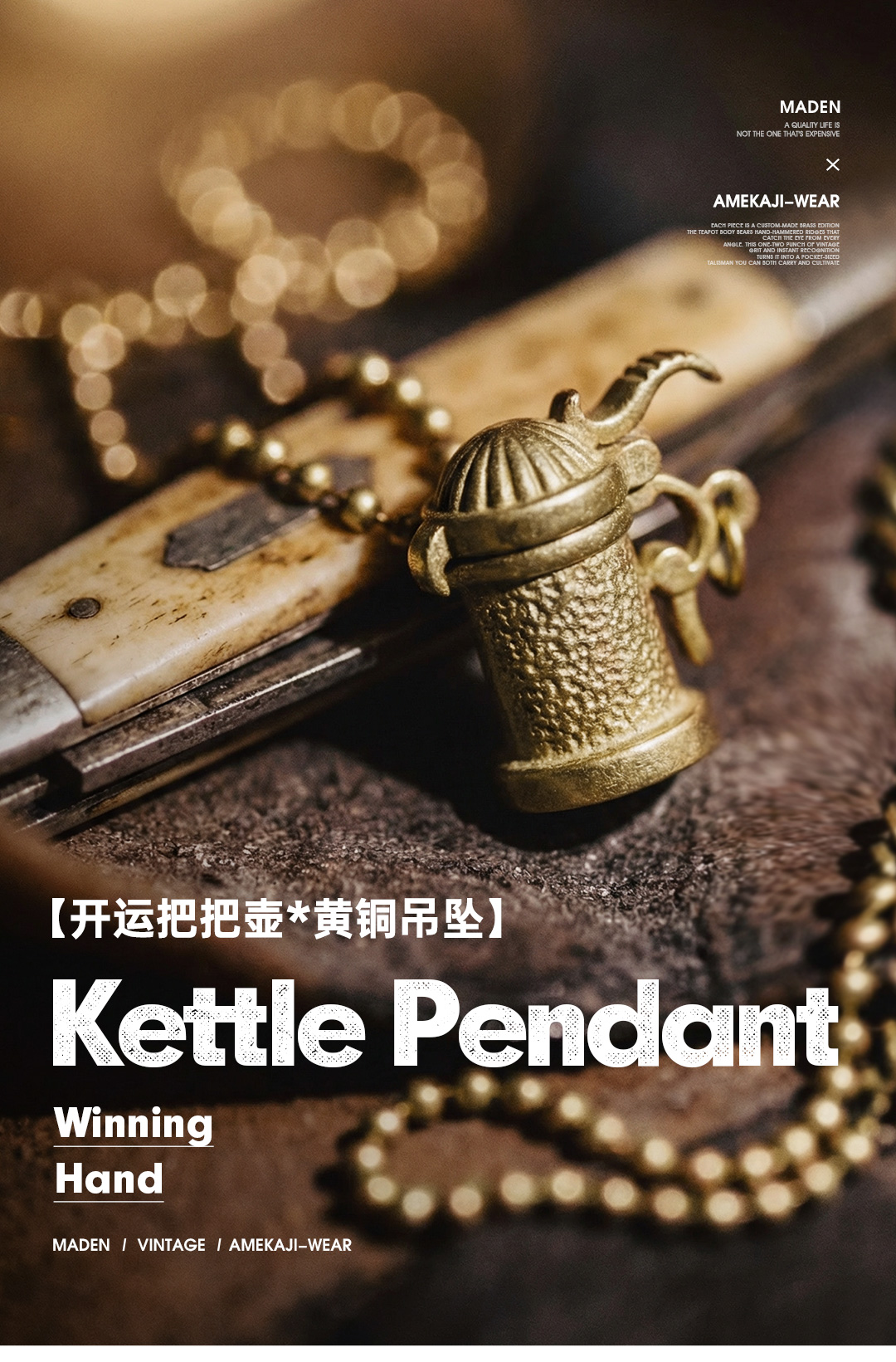 马登工装复古黄铜把把壶手把件黄铜挂件配饰品项链把把胡吊坠男款