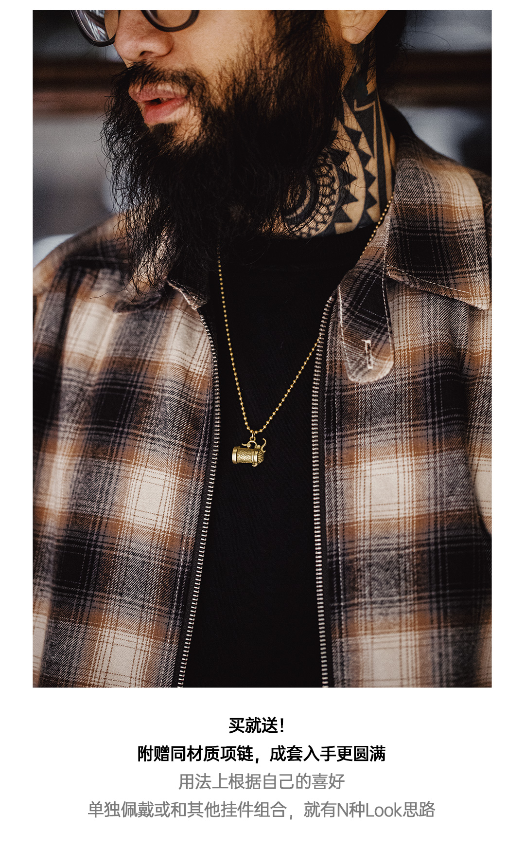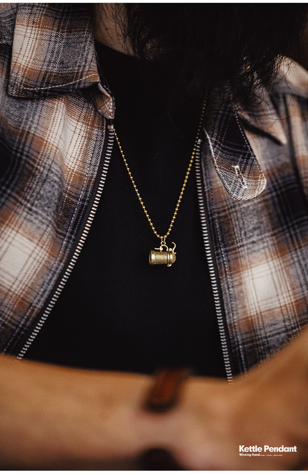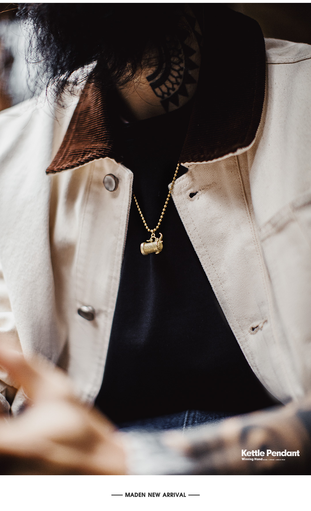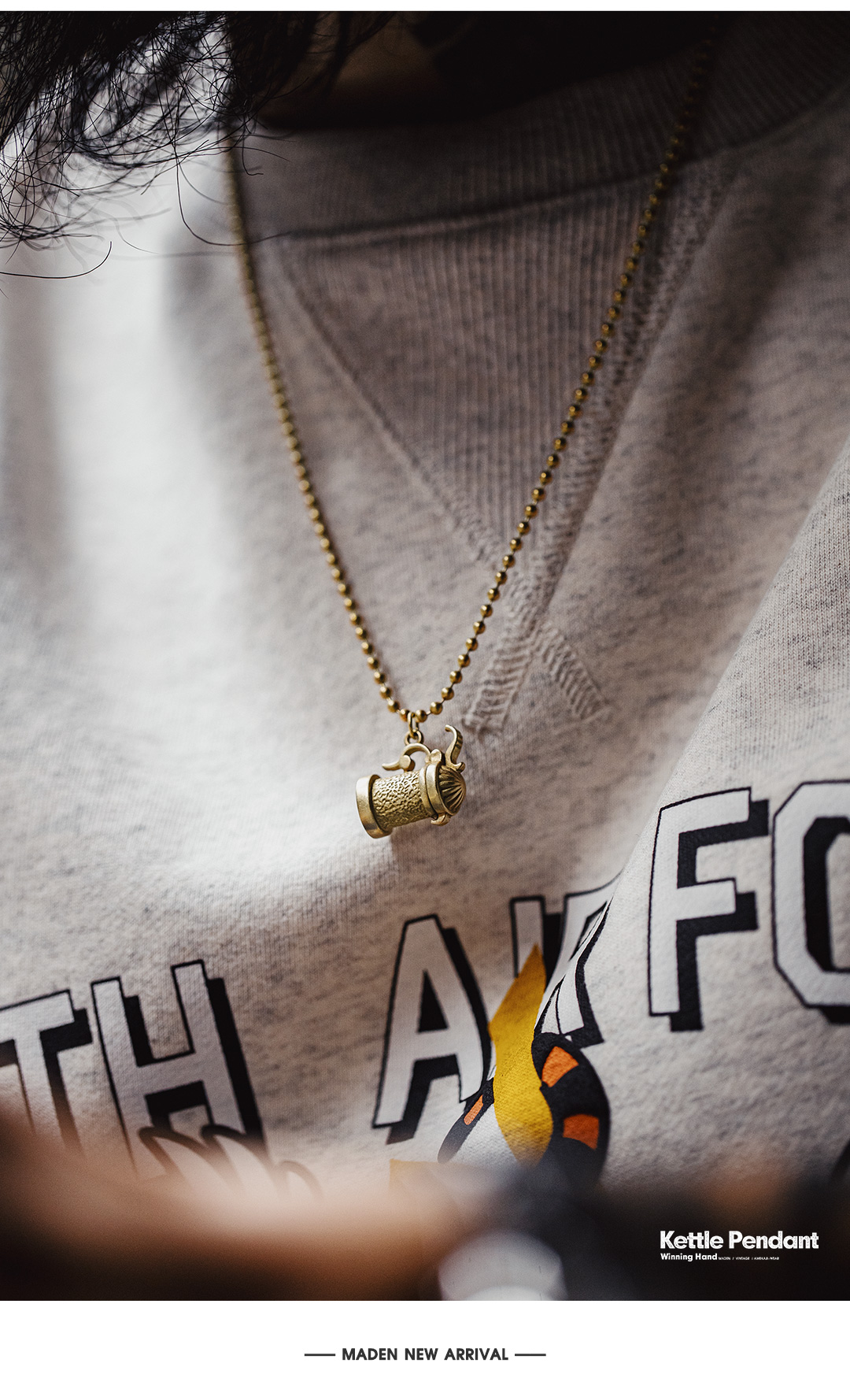 马登工装复古黄铜把把壶手把件黄铜挂件配饰品项链把把胡吊坠男款