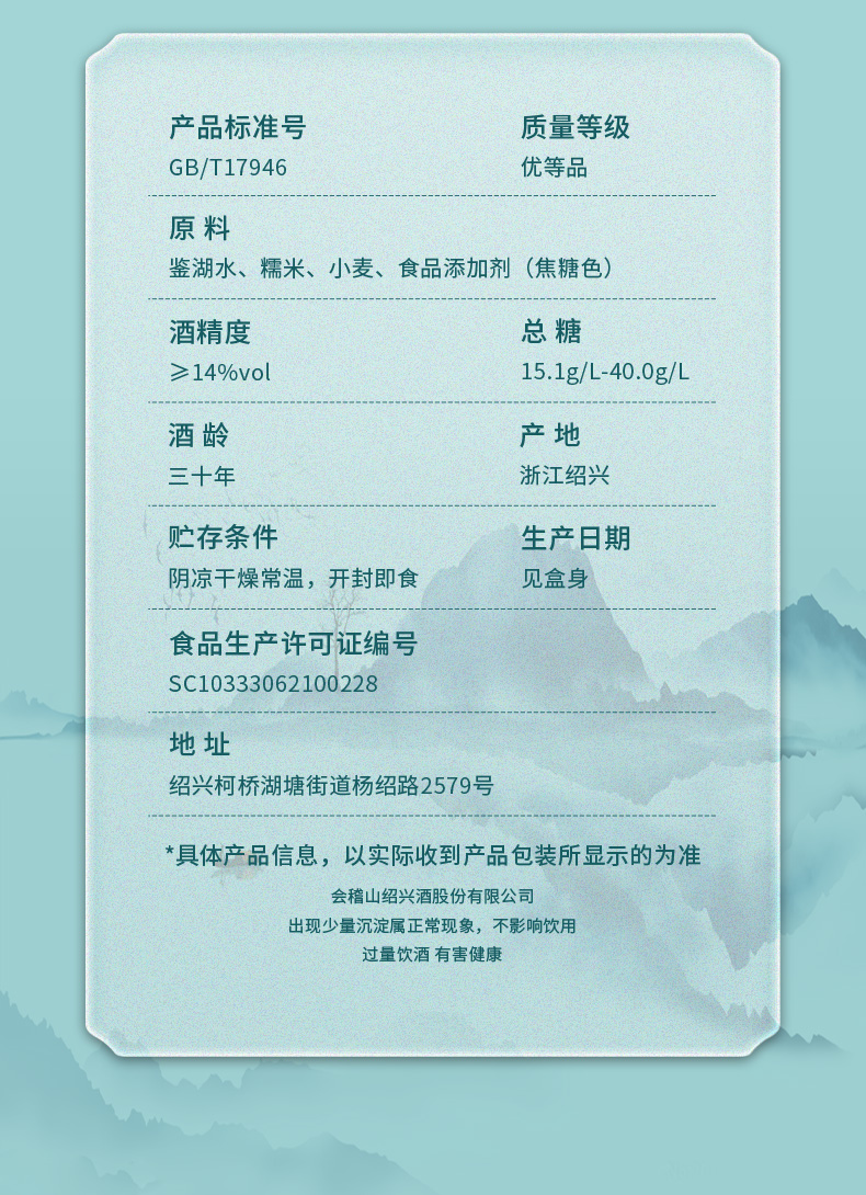 会稽山官旗 青瓷三十年陈600ml黄酒绍兴花雕老酒绍兴特产高端宴会用酒 商品图2