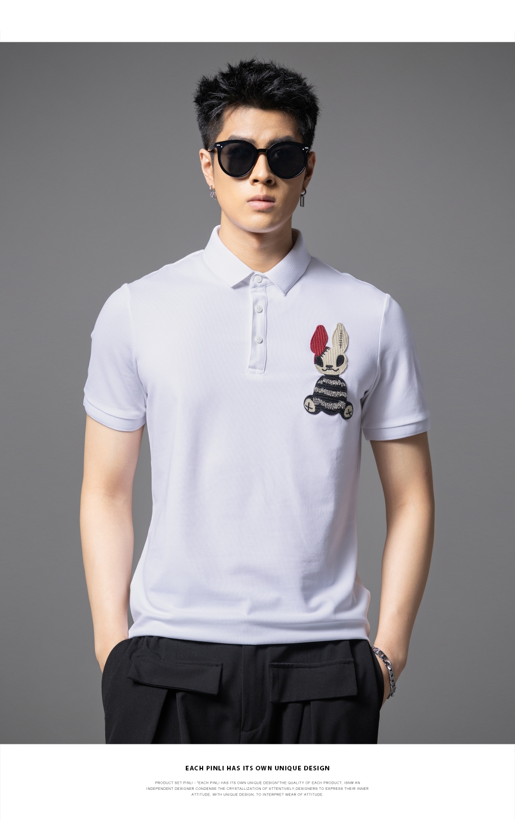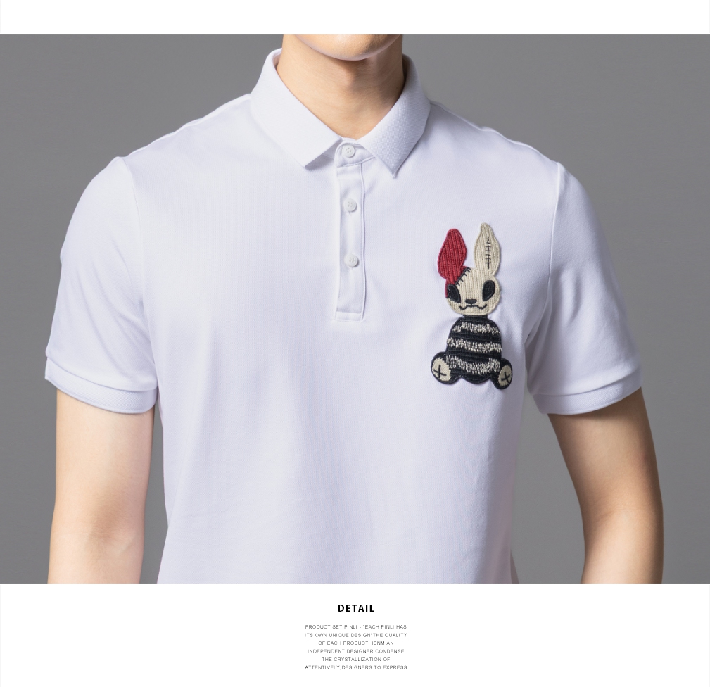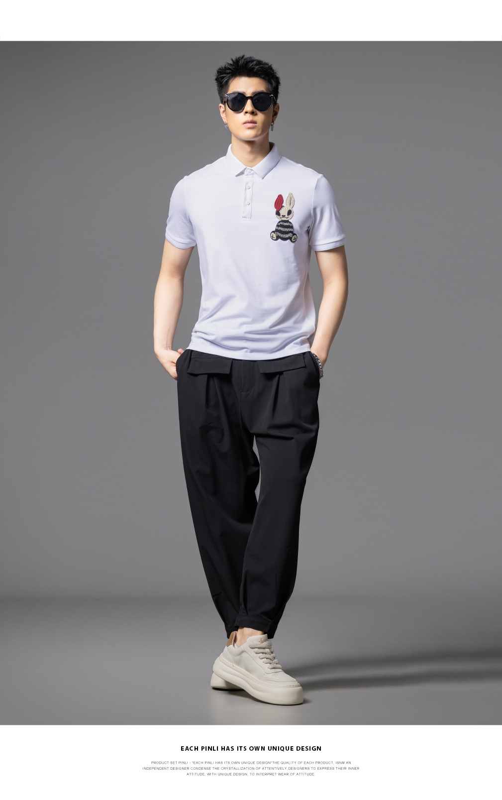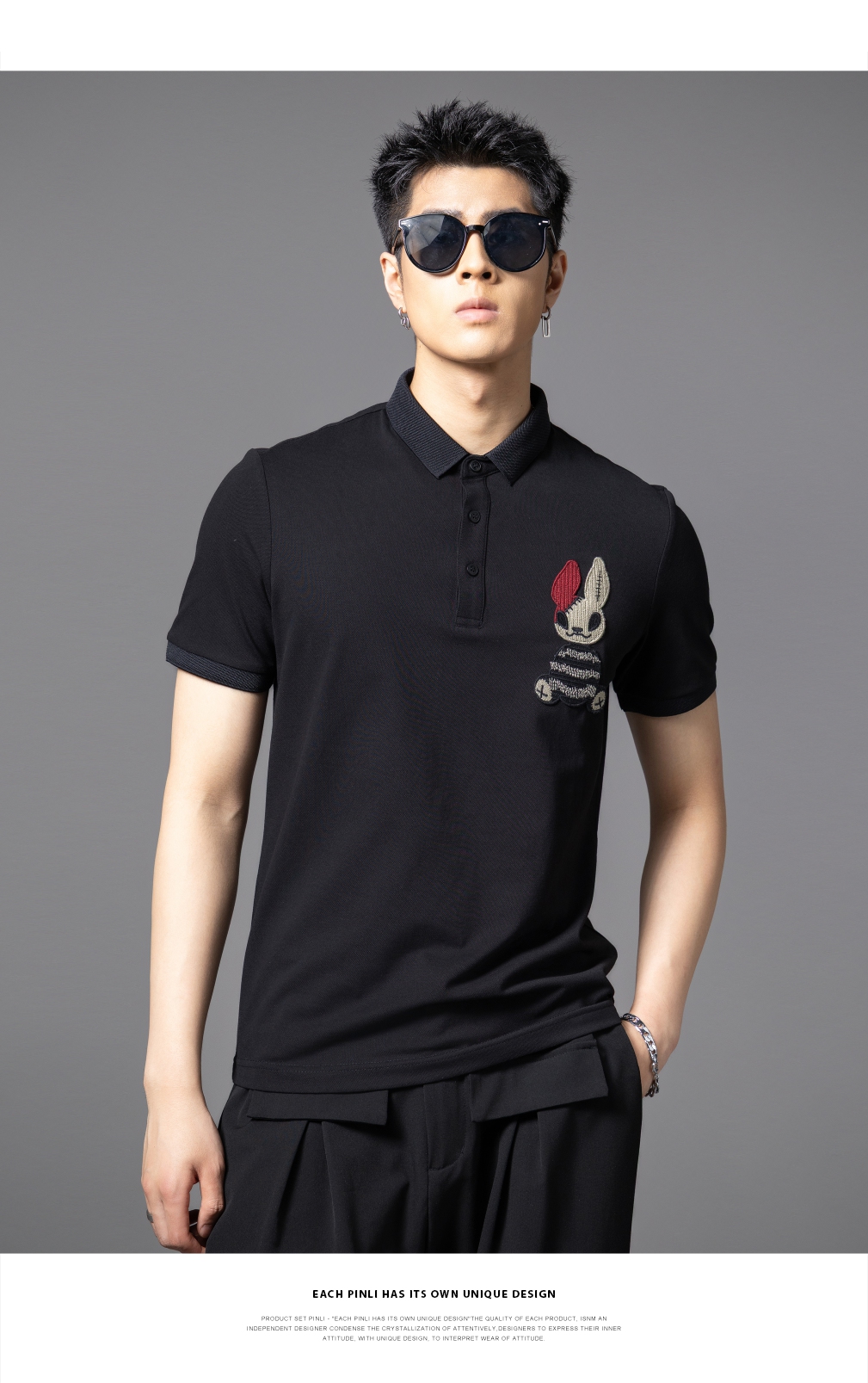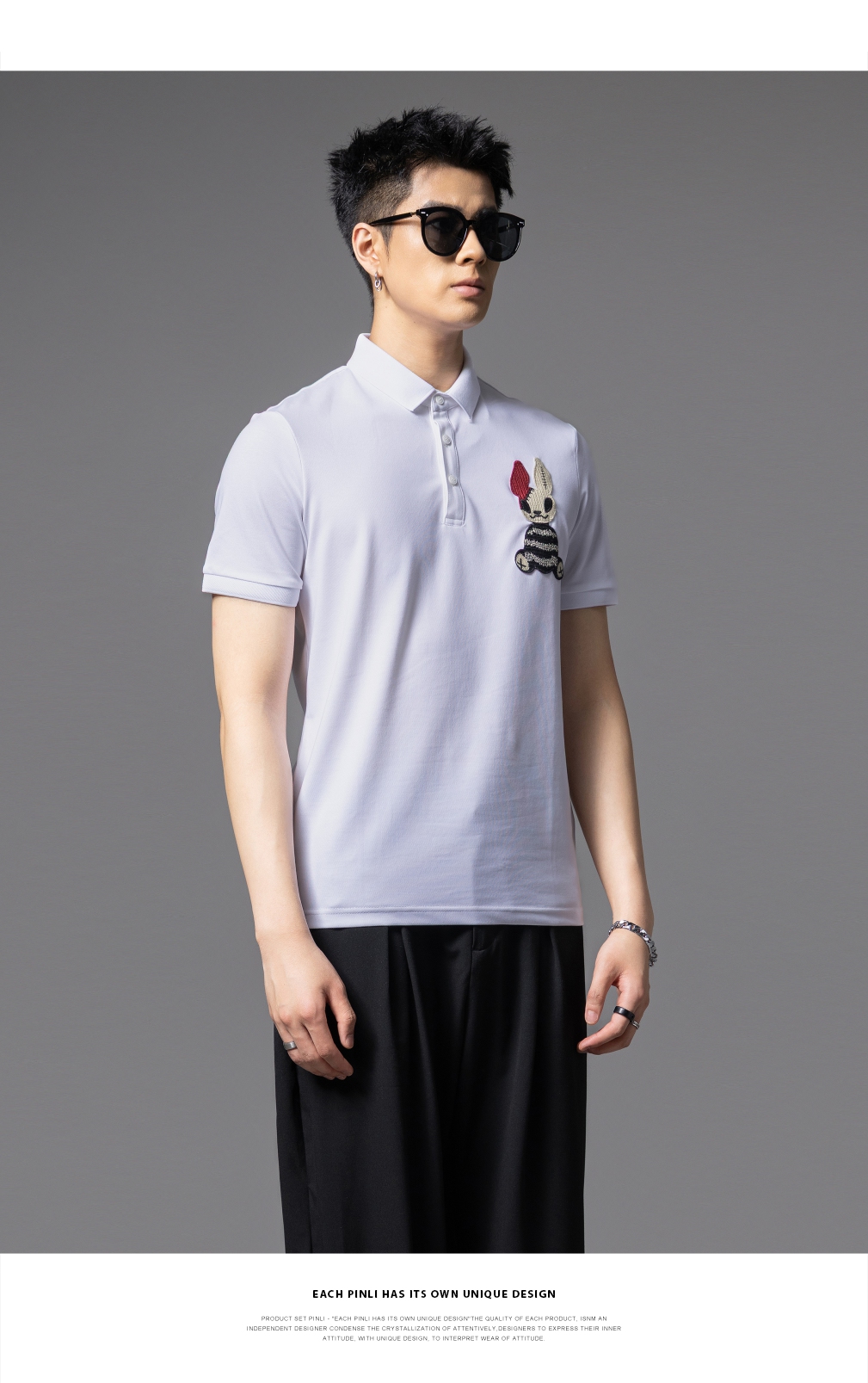 PINLI品立2025夏季夏季新款修身翻领兔子贴布绣短袖POLO衫男体恤BG252112095