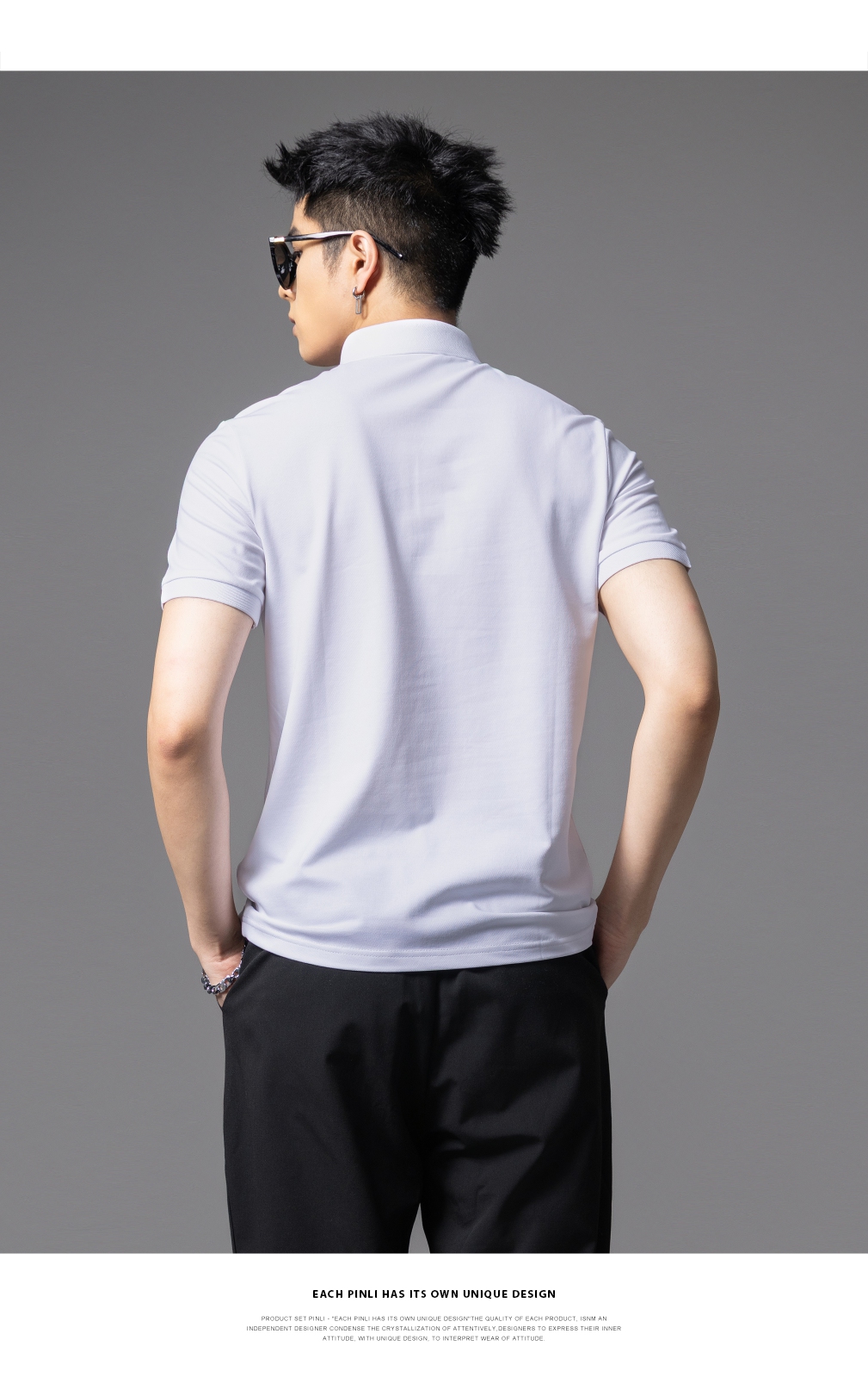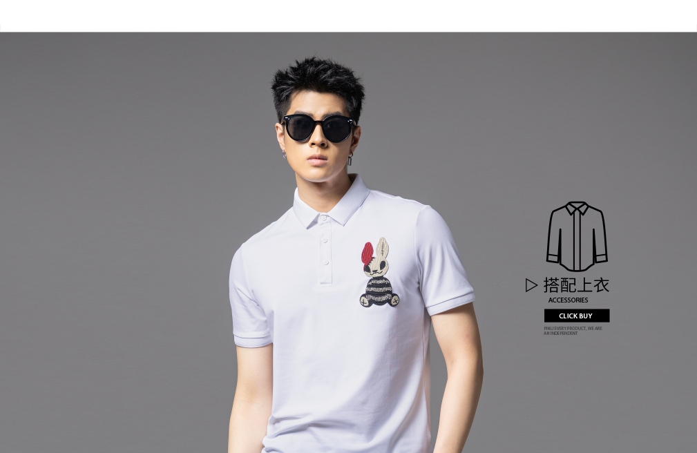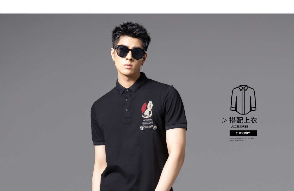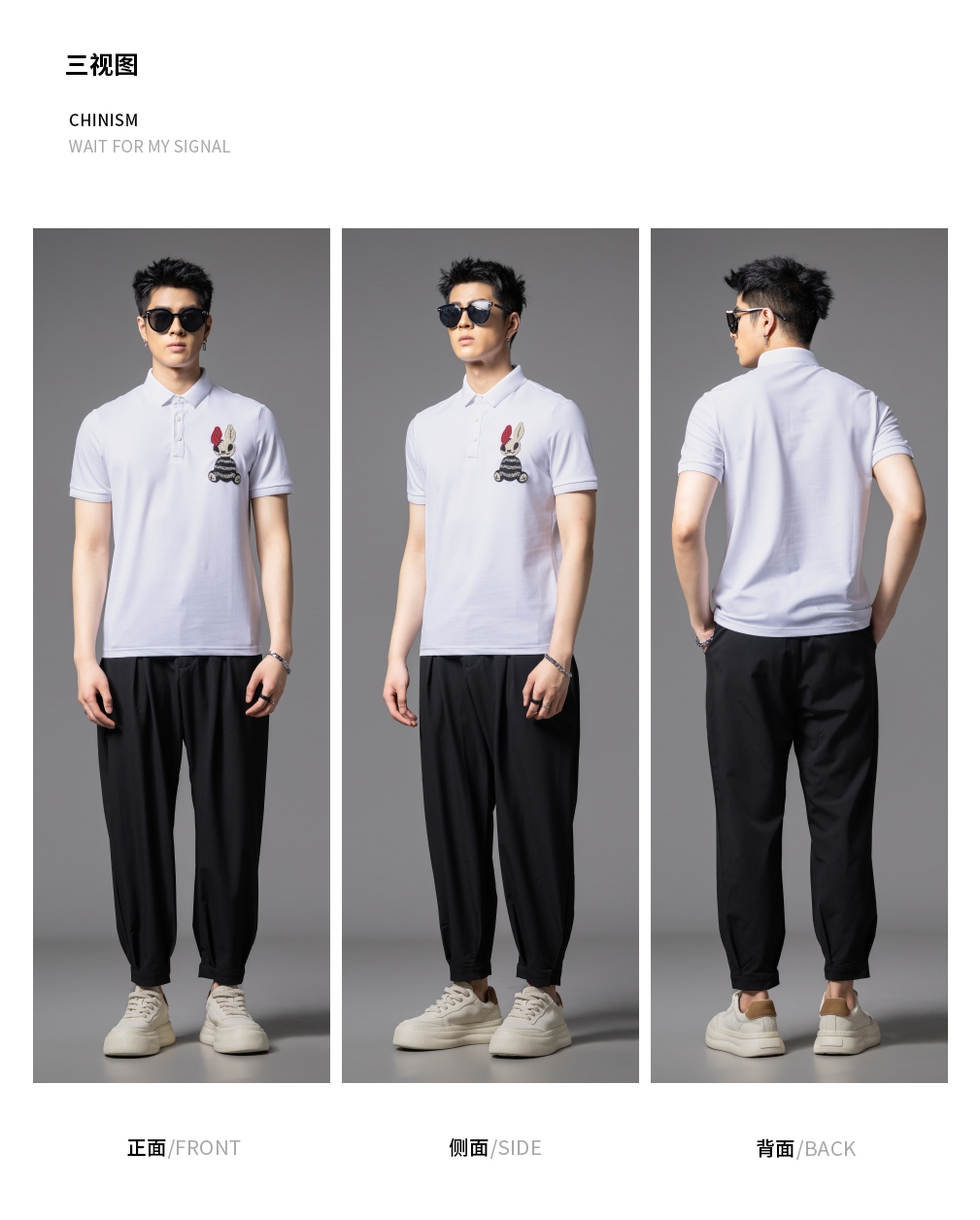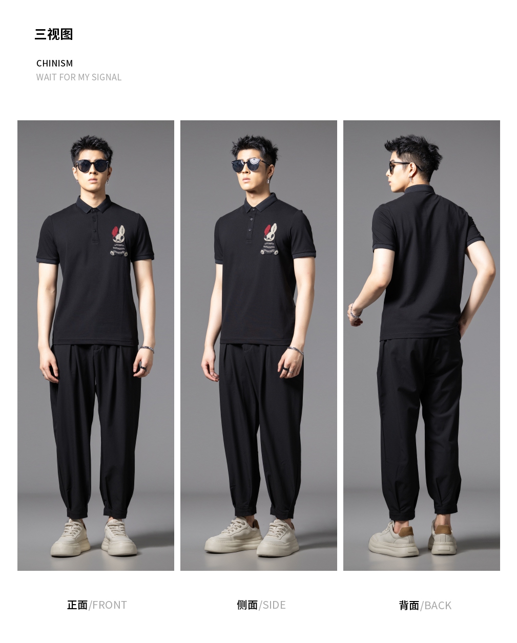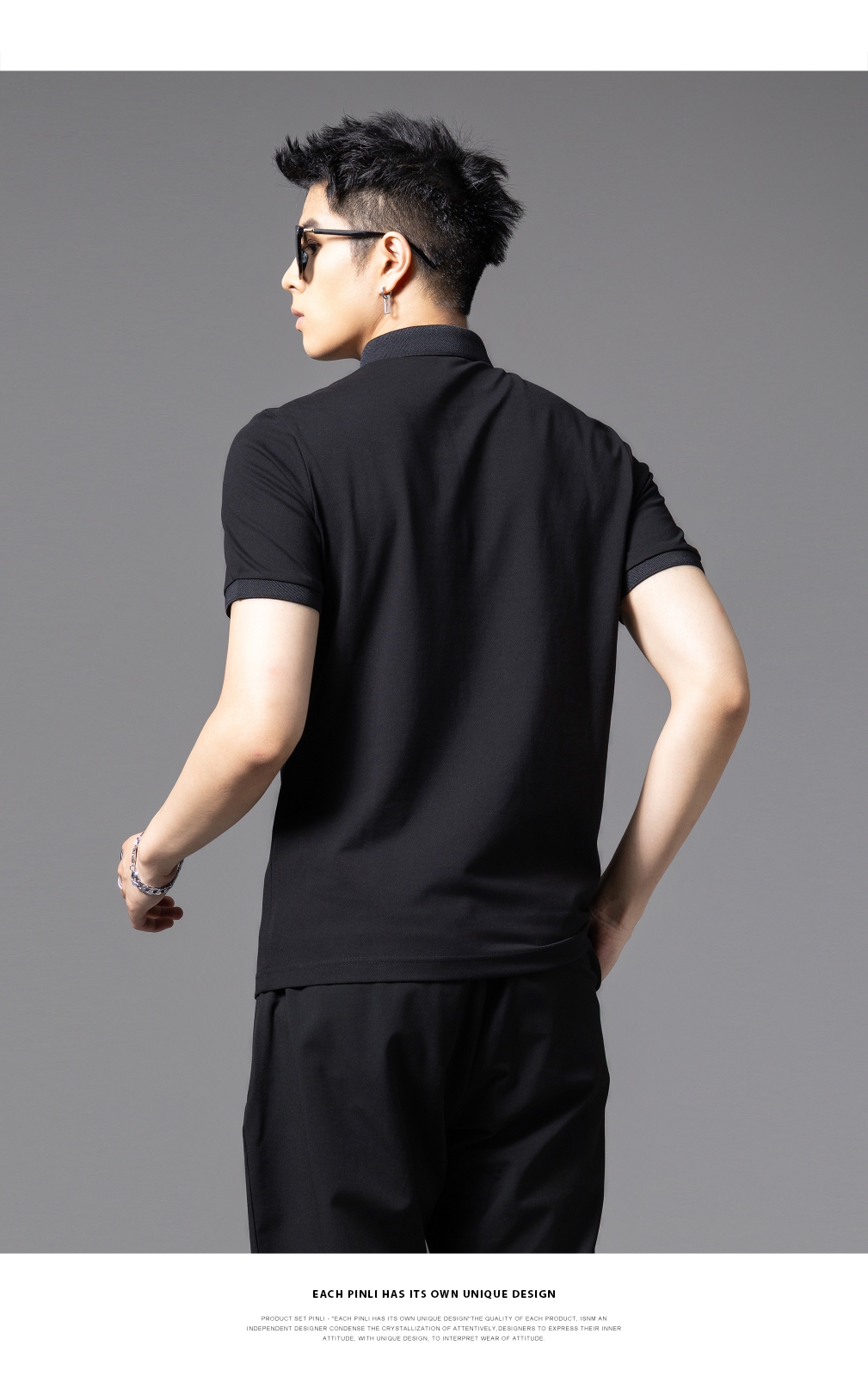 PINLI品立2025夏季夏季新款修身翻领兔子贴布绣短袖POLO衫男体恤BG252112095