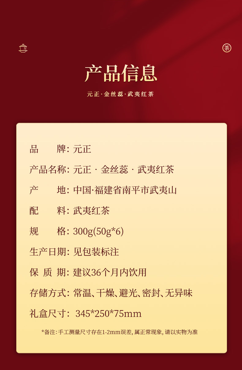 元正 蜜香金丝蕊礼盒装300g 特级正宗武夷红茶茶叶送礼