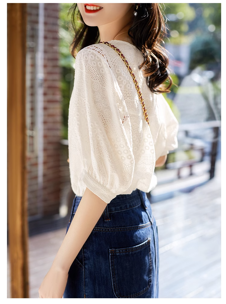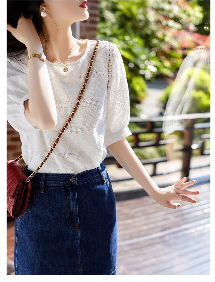 【2023夏季新款】短袖泡泡袖小衫 法式优雅赫本风气质减龄 轻柔舒爽透气不闷热 时尚搭配