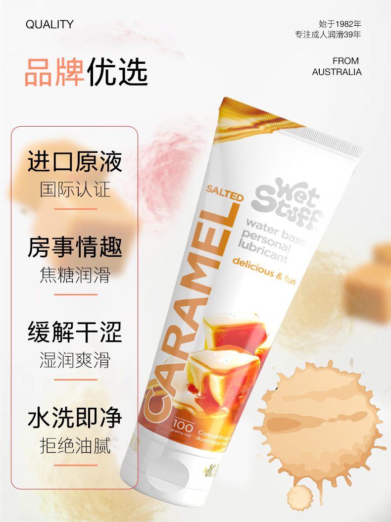 【新手推荐】澳洲WetStuff 可食用焦糖果味人体阴道润滑剂夫妻房事润滑油液成人性用品