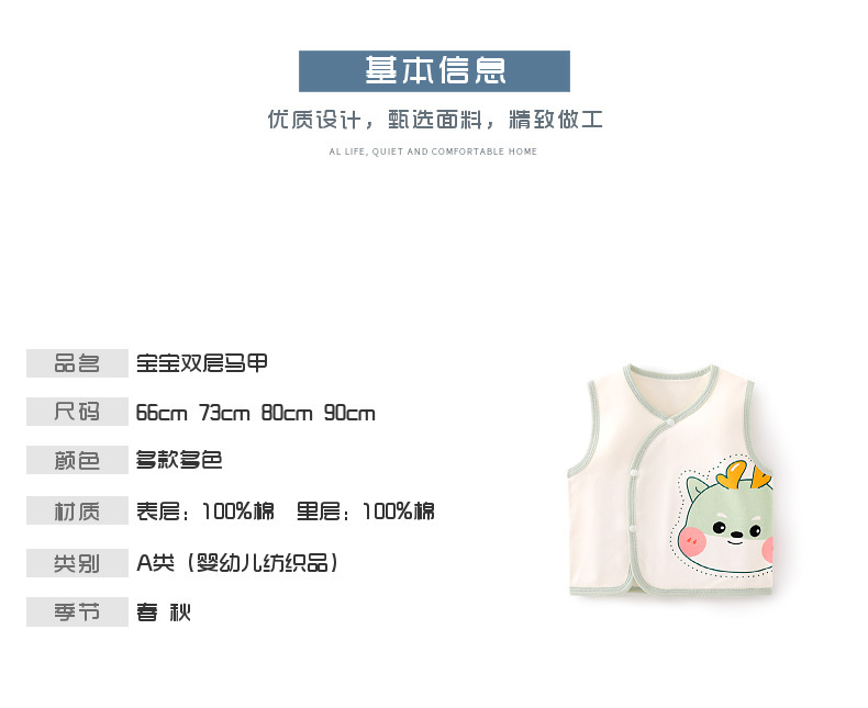【新生儿纯棉保暖护肚双层马甲】婴儿背心秋冬季宝宝儿童坎肩马夹上衣