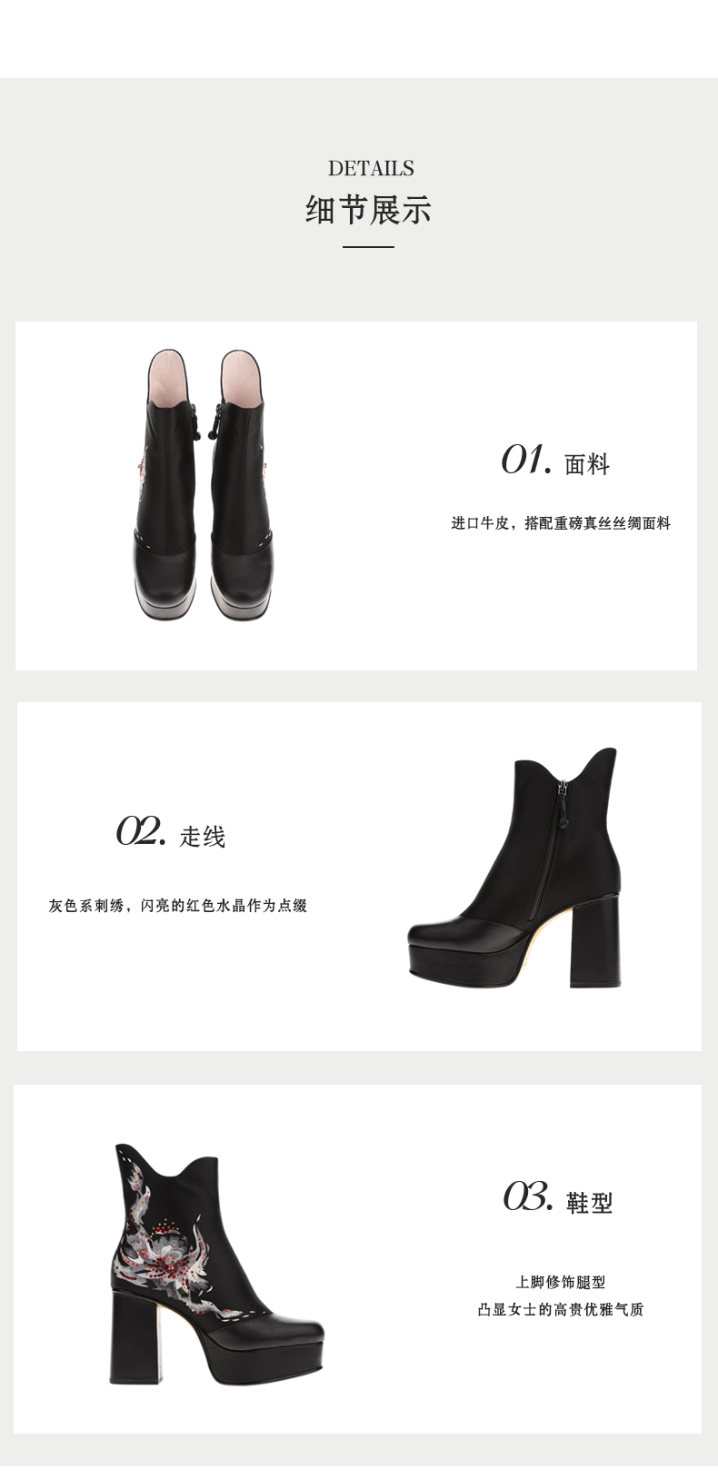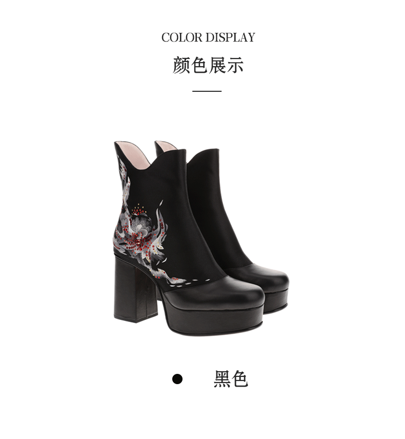 sheme新中式银色之火水晶加刺绣优雅女士短靴可定制