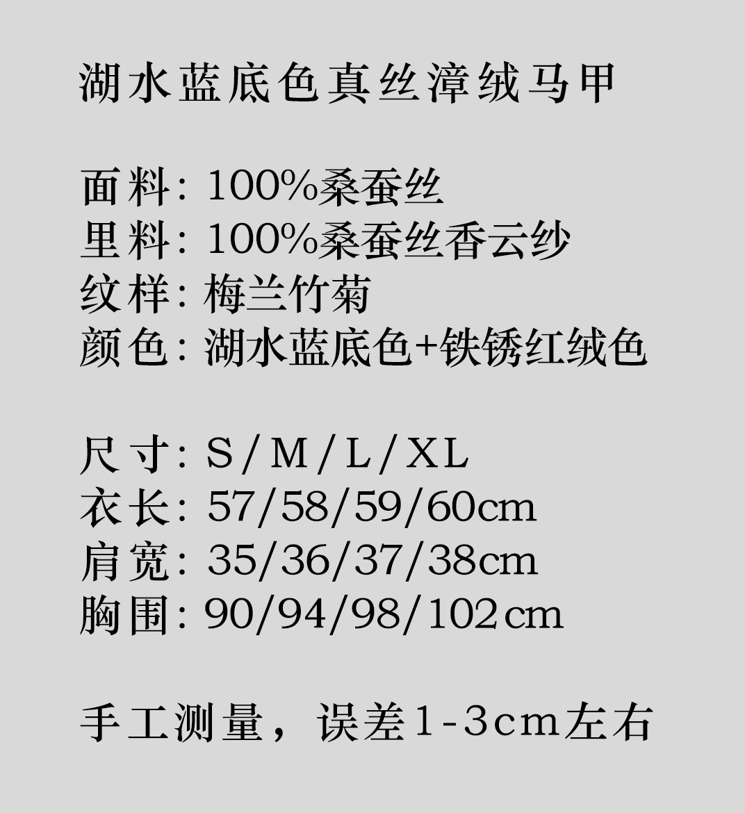 盛唐牡丹 |湖水蓝底色真丝漳绒马甲