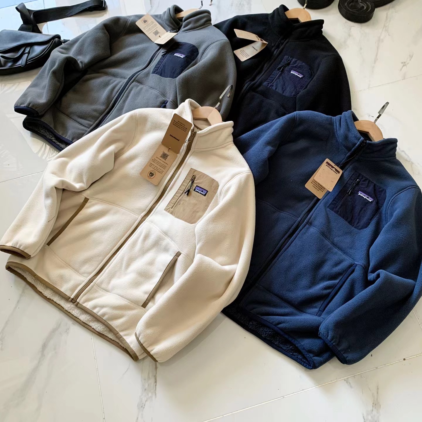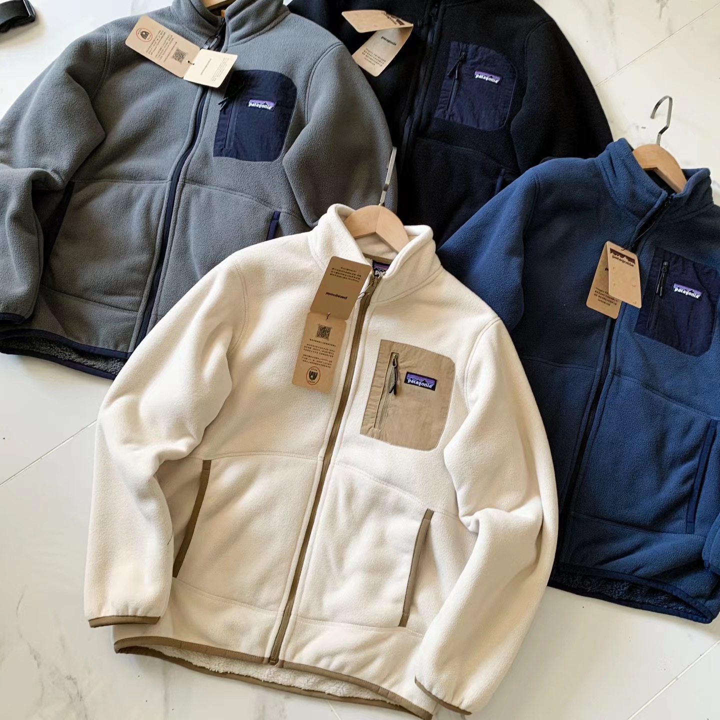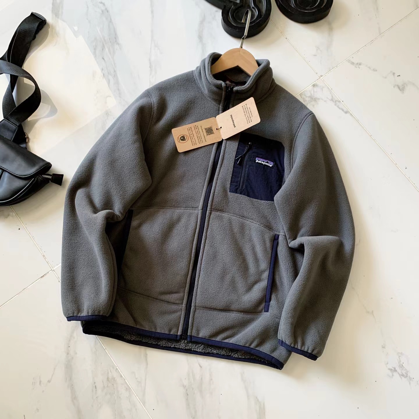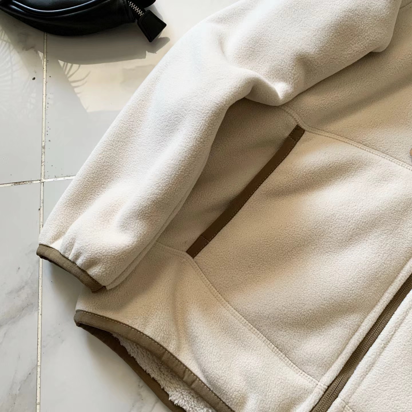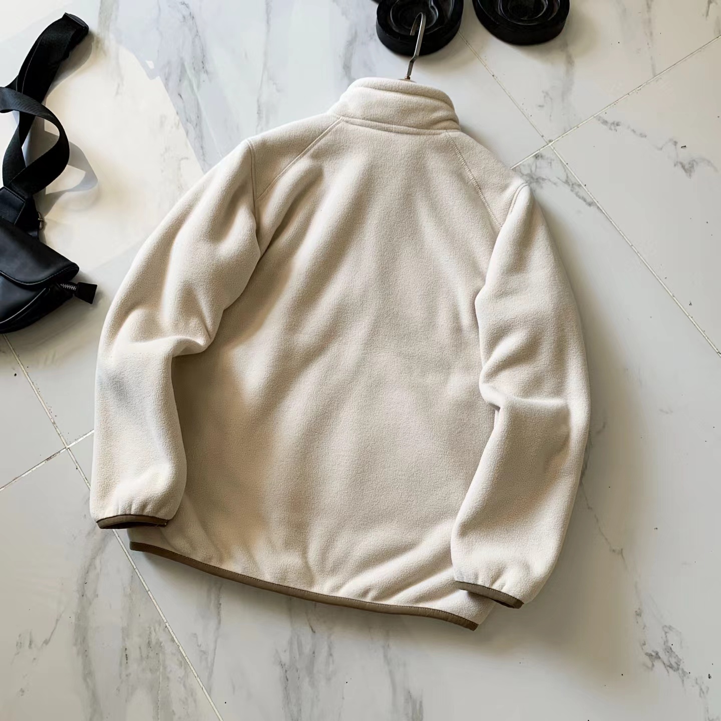Retro Pile抓绒羊羔绒男士保暖开衫立领拉链外套夹克 面料采用进口770克环保再生羊羔绒 全身4针6线弹力线迹 牢固拉伸自如非常舒适 加工工艺极度复杂,裁片拼接整齐对位,整衣走线密度精准,细节品控自观。