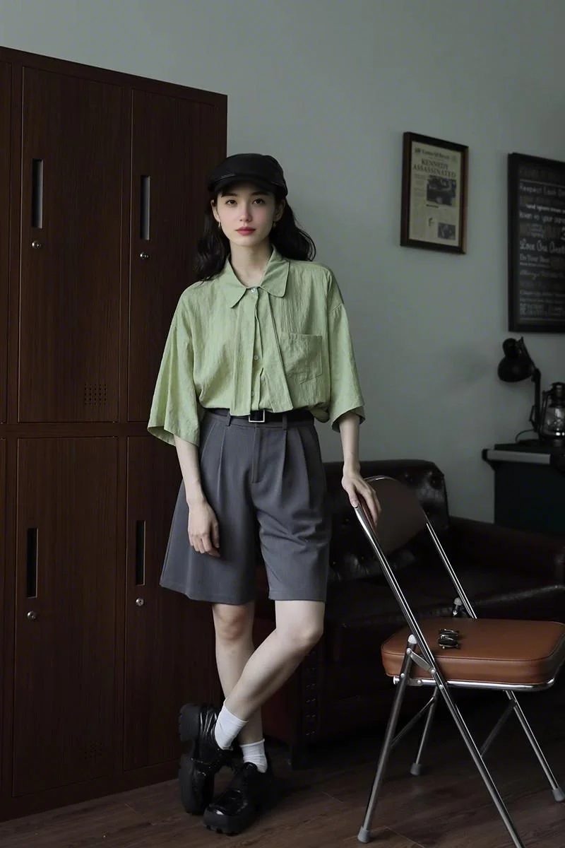 裁缝学苑AQ459复古设计感短袖衬衫纸样女装显瘦衬衣上衣样板图纸