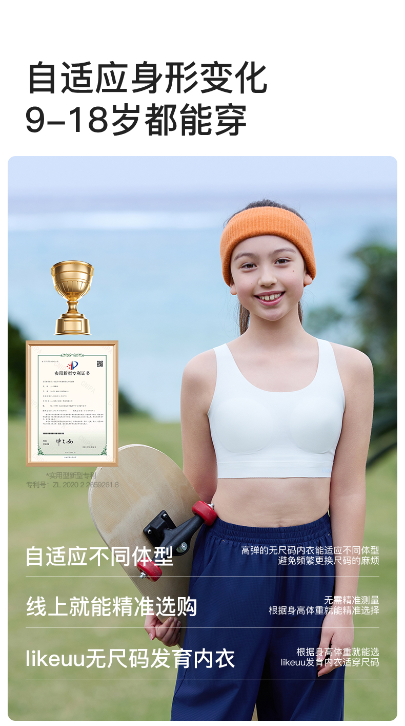 ubras旗下likeuu少女发育期体态管理内衣无尺码女童背心dr
